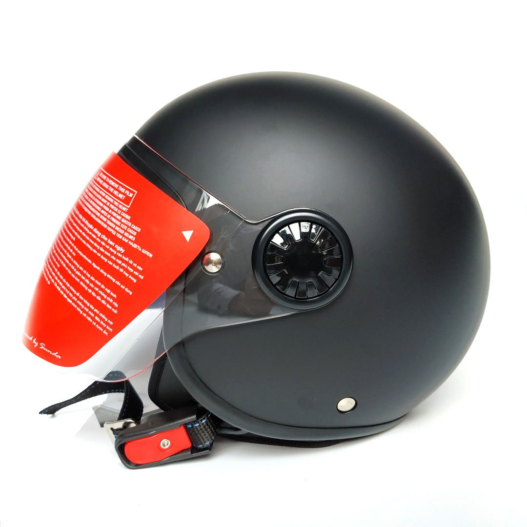 Mũ bảo hiểm nửa đầu có kính Sunda 180B tem là phụ kiện không thể thiếu khi đi xe mô tô, xe máy, mang lại sự an toàn và phong cách thời trang cho người sử