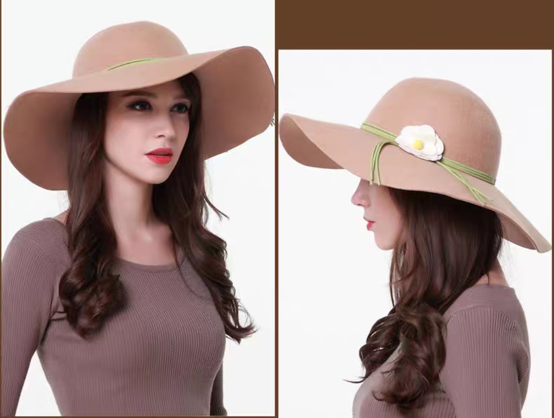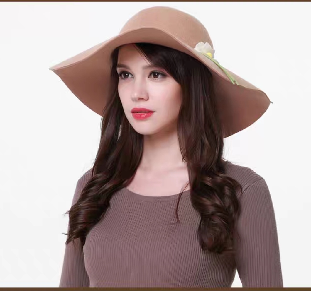 Mua tại TiktokNón mũ nữ rộng vành đi biển chống nắng fedora màu kem nỉ thời trang Hàn Quốc Chất liệu nỉ