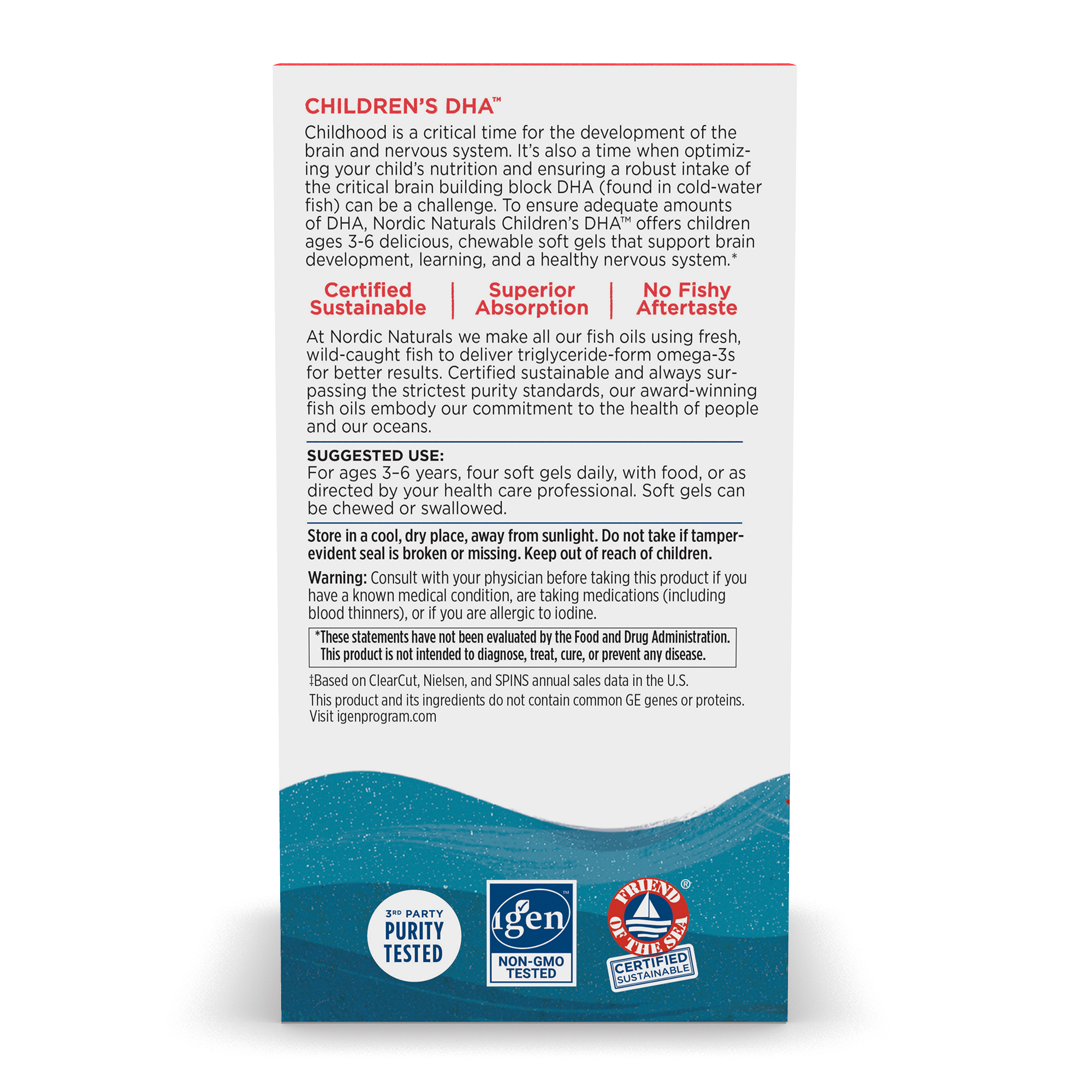 Sản phẩm được sản xuất hoàn toàn từ dầu gan cá tuyết nguyên chất, Nordic Naturals Children's DHA là nguồn cung cấp omega-3 EPA và DHA cân bằng cần thiết cho sự phát triển khỏe mạnh của trẻ. Các viên nang mềm (có thể nhai) hỗ trợ phát triển trí não, nhận thức và khả năng học hỏi, dành cho trẻ từ 3 đến 6 tuổi