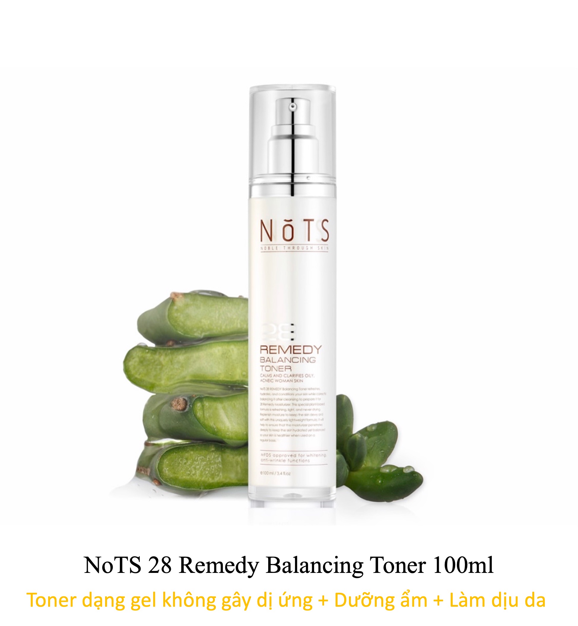 Mua tại TiktokNước hoa hồng cân bằng da NoTS 28 Remedy Balancing Toner là sản phẩm thuộc dòng 28 Remedy ứng dụng công nghệ mới với chiết xuất cây xương rồng giàu chất Aquaporin có tác dụng cung cấp độ ẩm tối ưu và làm mát da hiệu quả. NoTS 28 Remedy Balancing Toner sử dụng công thức chiết xuất từ nhiều loại thực vật tự nhiên, lý tưởng nhất khi sử dụng với làn da nhạy cảm, dễ kích ứng, nổi mụn. Nước hoa hồng giúp lỗ chân lông se khít, da sạch thoáng, mịn màng đồng thời sẵn sàng hấp thu dưỡng chất của các bước chăm sóc da tiếp theo. Đồng thời, các thành phần hoạt tính như Adenosine, Niacinamide sẽ tăng cường sức khỏe làn da, làm chậm quá trình lão hóa, ngăn ngừa nếp nhăn, duy trì làn da sáng khỏe, mịn màng đầy sức sống. Thành phần chính
