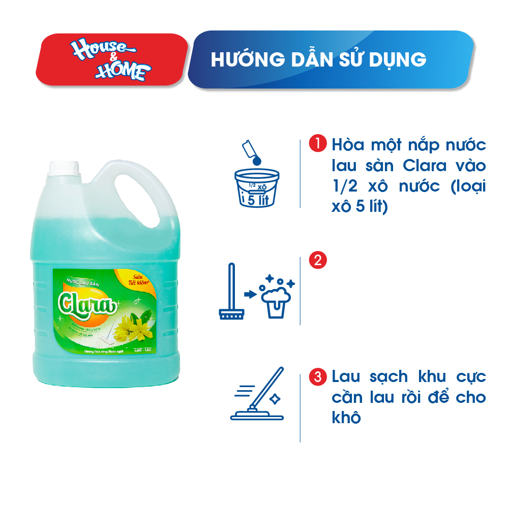 - Với công thức làm sạch độc đáo, nước lau sàn Clara hương hoa rừng thơm mát có khả năng đánh bay mọi vết bẩn cũng như loại bỏ vi khuẩn trên sàn nhà một cách nhanh chóng mà không trầy xước, mất màu mặt sàn.