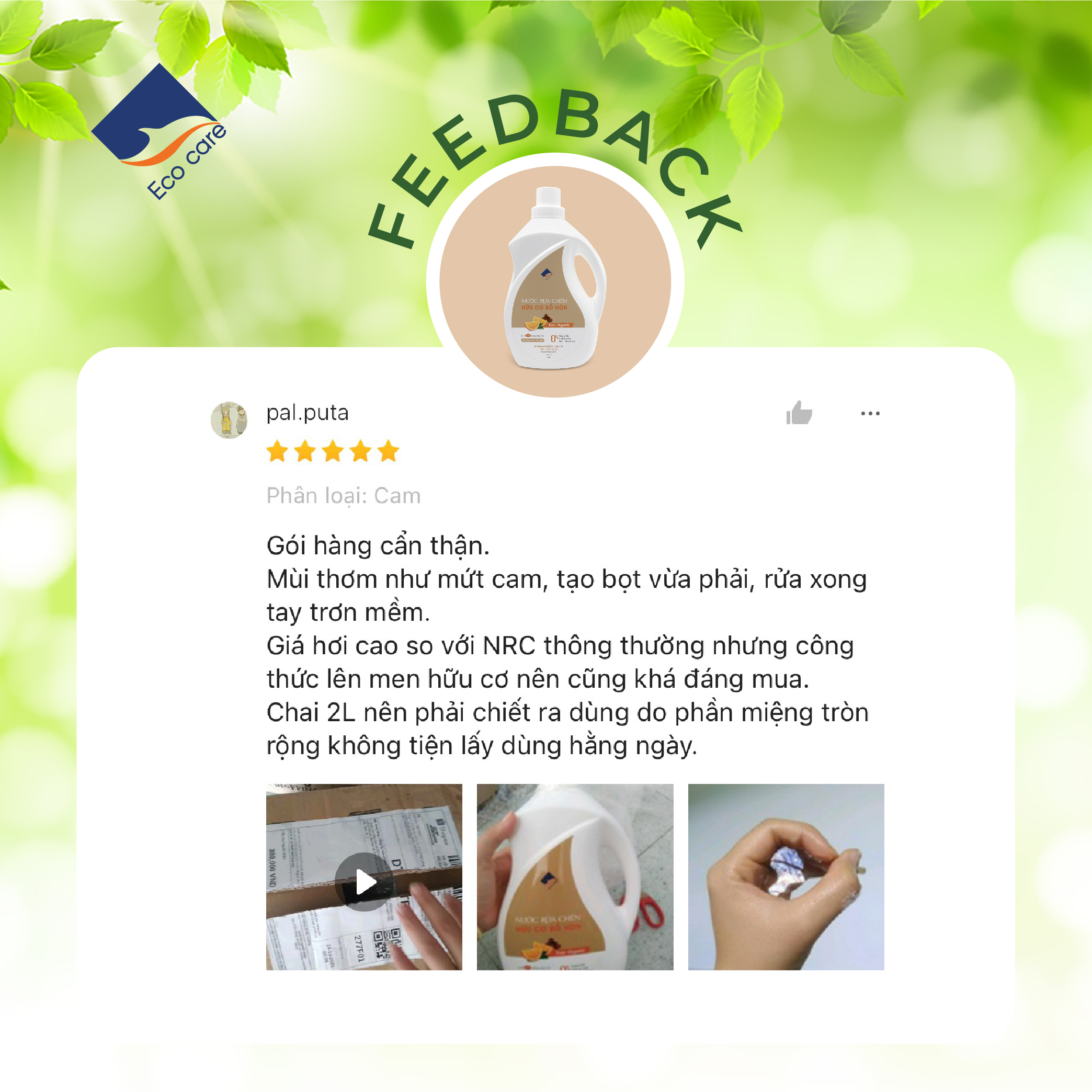 • Trước tiên, Công ty Ecocare xin cảm ơn Quý Khách hàng đã tin tưởng lựa chọn sản phẩm Nước rửa chén hữu cơ Bồ hòn 4000ml hương Cam
