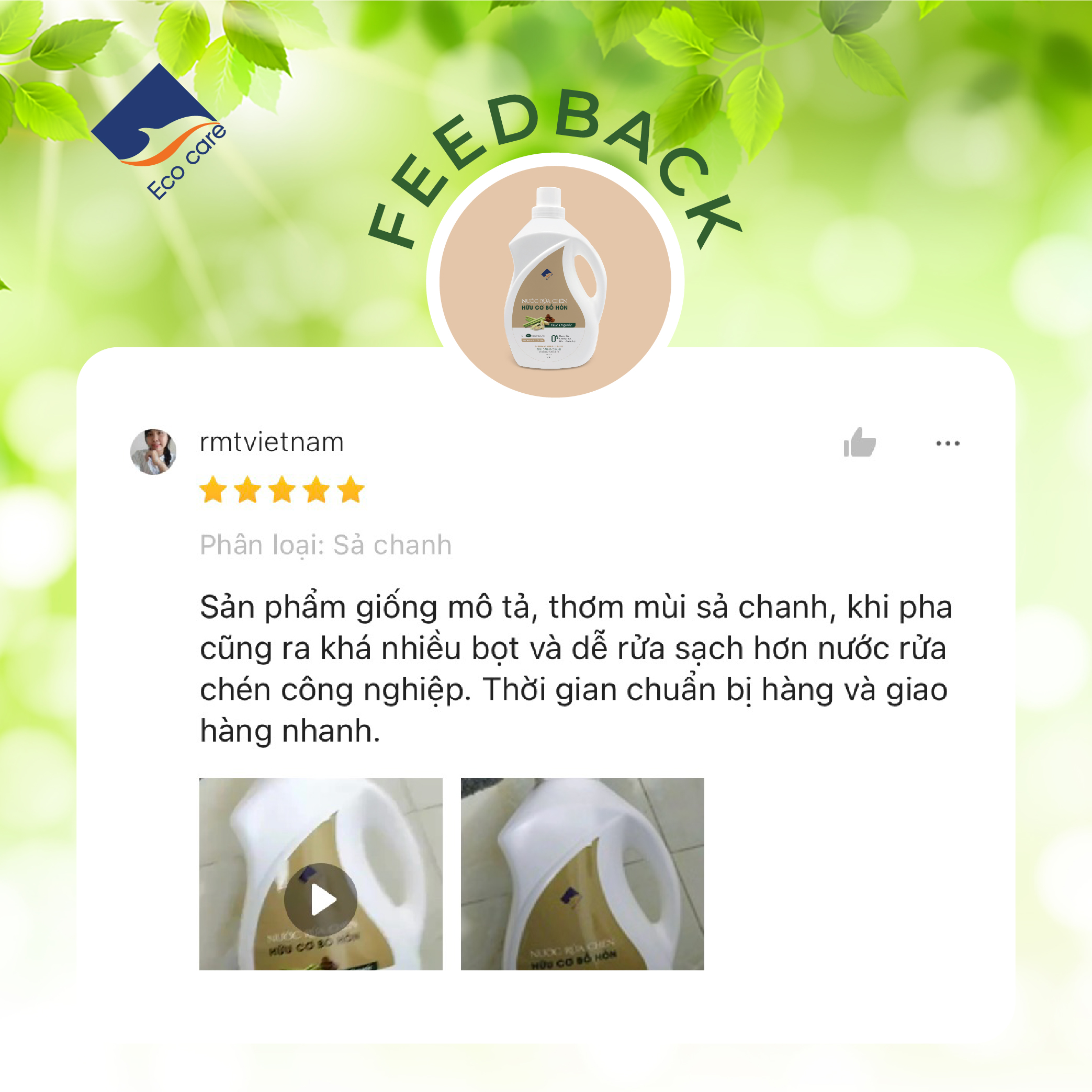 VÌ SAO NƯỚC RỬA CHÉN HỮU CƠ BỒ HÒN ECOCARE LẠI ĐƯỢC MỌI NGƯỜI TIN DÙNG? Sản phẩm có thành phần 99% tự nhiên, nguồn gốc thực vật. Sử dụng Công nghệ lên men bồ