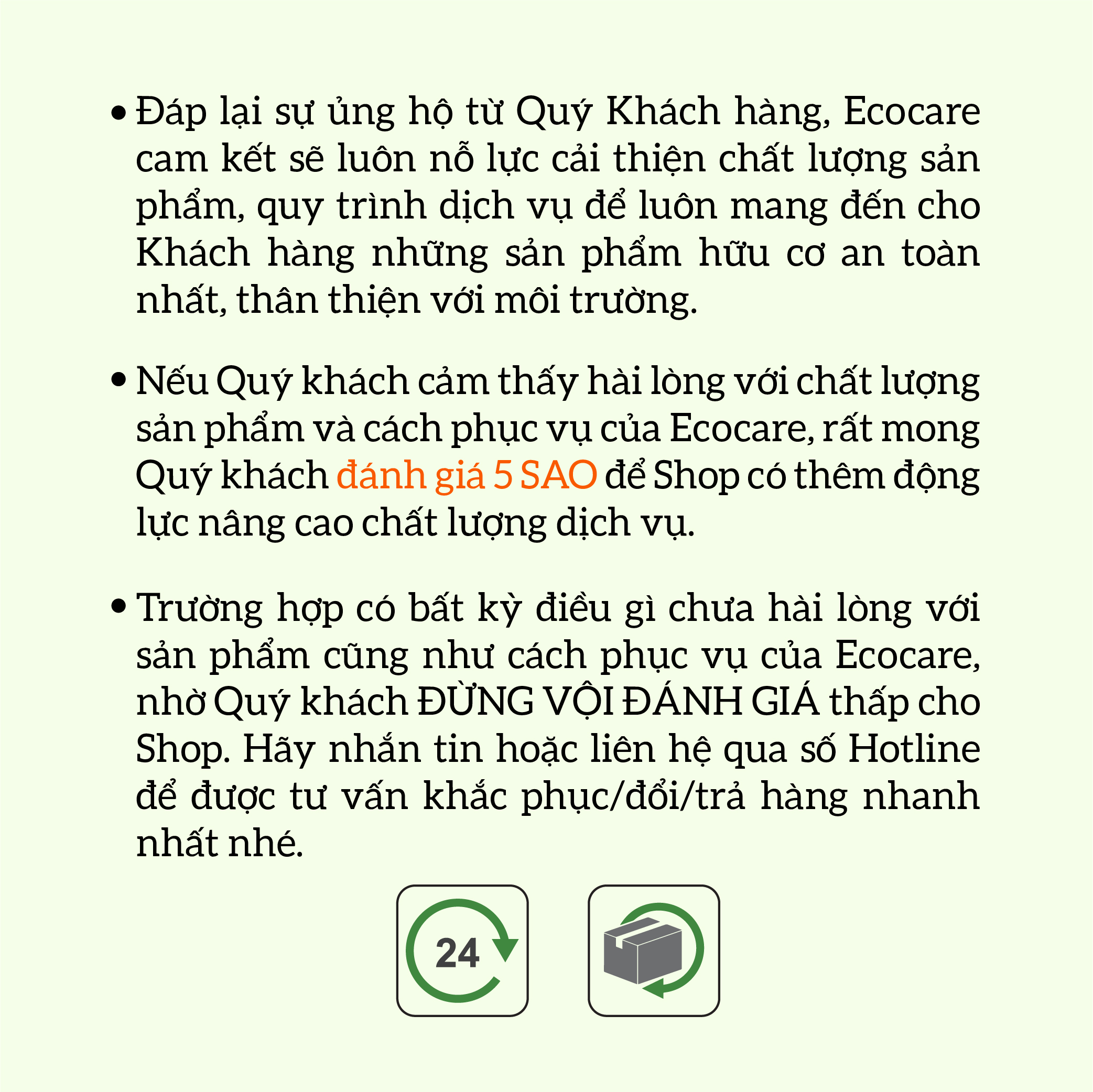 QUÝ KHÁCH VUI LÒNG CHỌN "SHIP HOẢ TỐC" ĐỂ NHẬN HÀNG TRONG VÒNG 2 GIỜ       THÔNG ĐIỆP TỪ NHÀ SẢN XUẤT ECOCARE: - Trước tiên, Công ty Ecocare xin cảm ơn Quý