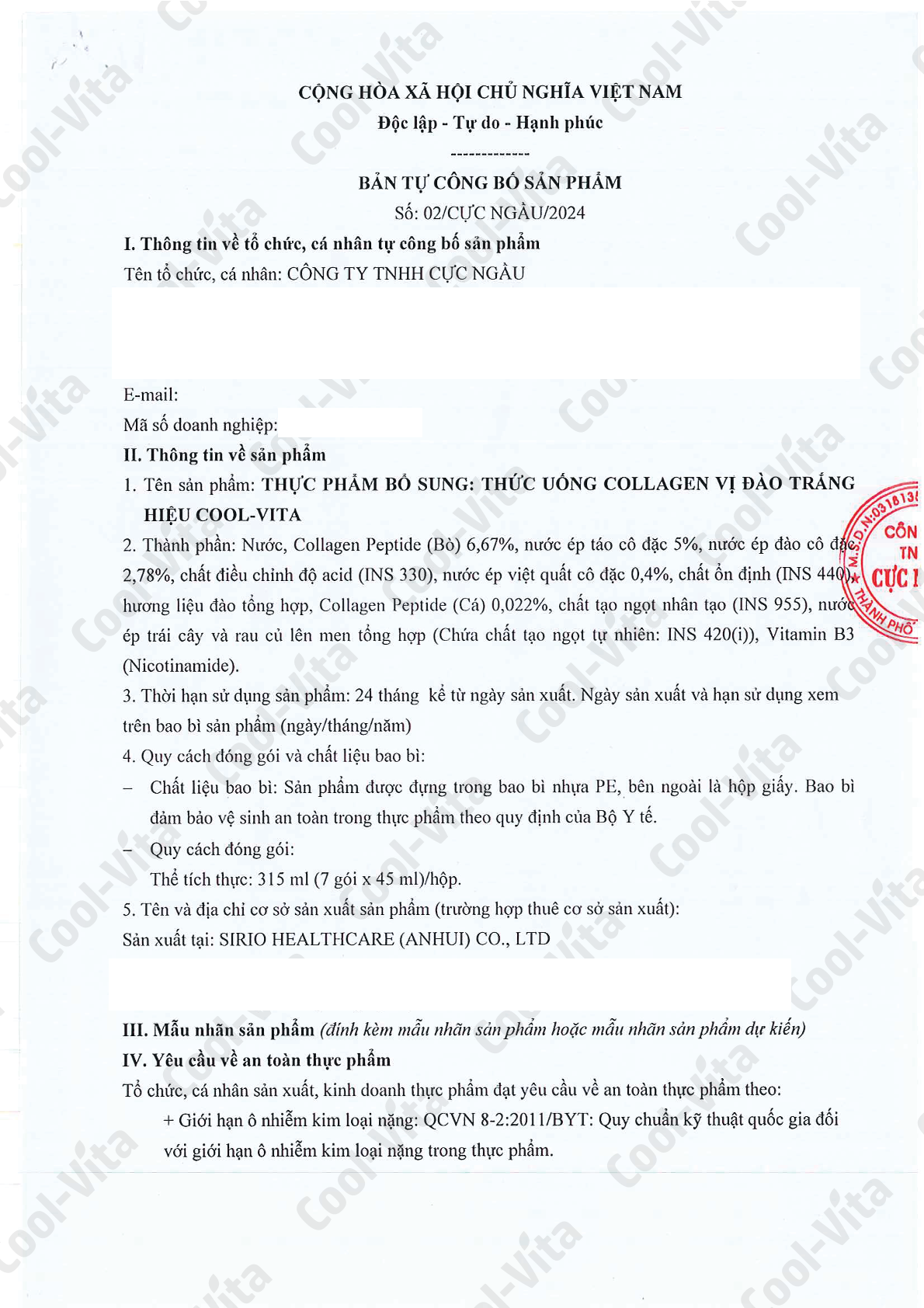 Trải nghiệm sản phẩm bổ sung collagen tối ưu với Cool-Vita – sản phẩm tăng cường collagen dạng uống đảm bảo khả năng hấp thụ cao và mang lại lợi ích tối đa. Hãy đón nhận một cơ thể khỏe mạnh, tràn đầy sức sống hơn với Cool-Vita ngay hôm nay!