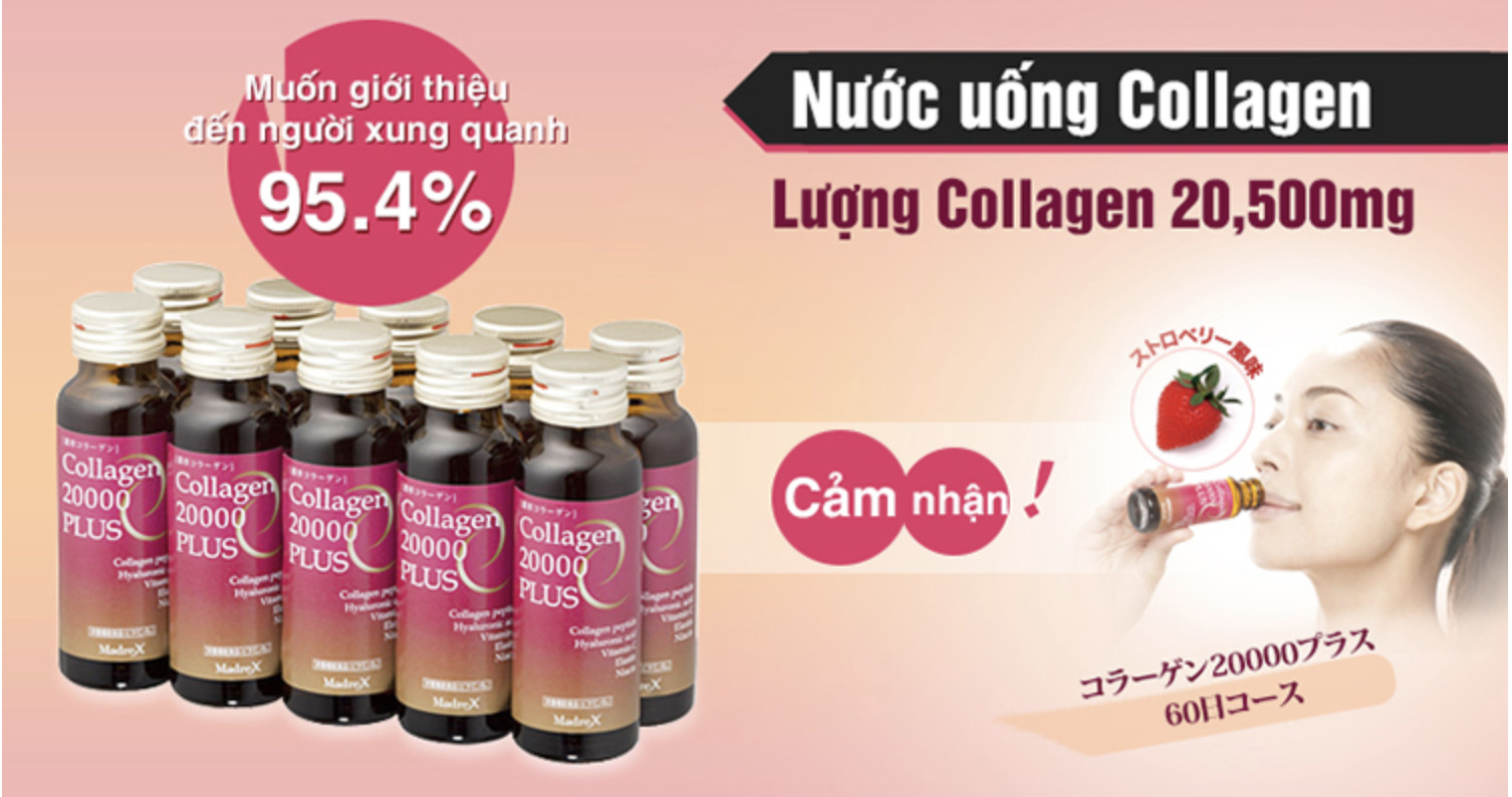 - Nước uống đẹp da Collagen 20000 Plus Nhật Bản được chiết xuất từ sụn cá mập, có cấu trúc phân tử chỉ bằng 1/60 collagen thông thường, đồng thời kết hợp với Vitamin C giúp collagen được hấp thụ vào cơ thể nhanh hơn gấp 5 – 7 lần. Ngoài ra, các nghiên cứu cũng chỉ ra rằng Collagen từ cá biển có cấu trúc gần giống với collagen ở người nhất nên mang lại hiệu quả cải thiện và làm đẹp da rõ rệt.