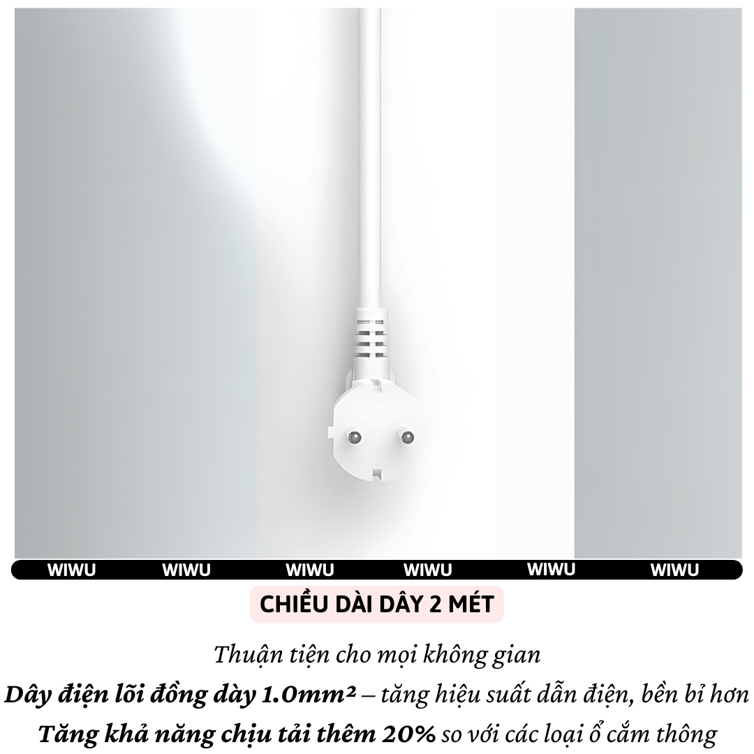 ✨Ổ cắm điện đa năng 11 in 1 2500W WIWU Wi-S006 PS524 4 cổng Type-C (PD 20W), 2 cổng USB-A (2.4A), 5 ổ cắm AC, dây điện dài 2m, Chống cháy, Chip Ai an toàn sạc cho iPhone ipad Macbook Vivo oppo samsung huawei - Hàng nhập khẩu