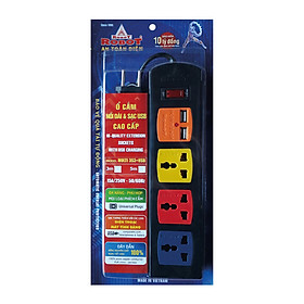Ổ cắm 3 ổ đa năng + 2 ổ cắm USB cách điện bền đẹp - Chịu nhiệt, chống cháy: 750 độ C - Chiều dài dây điện: 1.8 mét - Chân tiếp xúc với