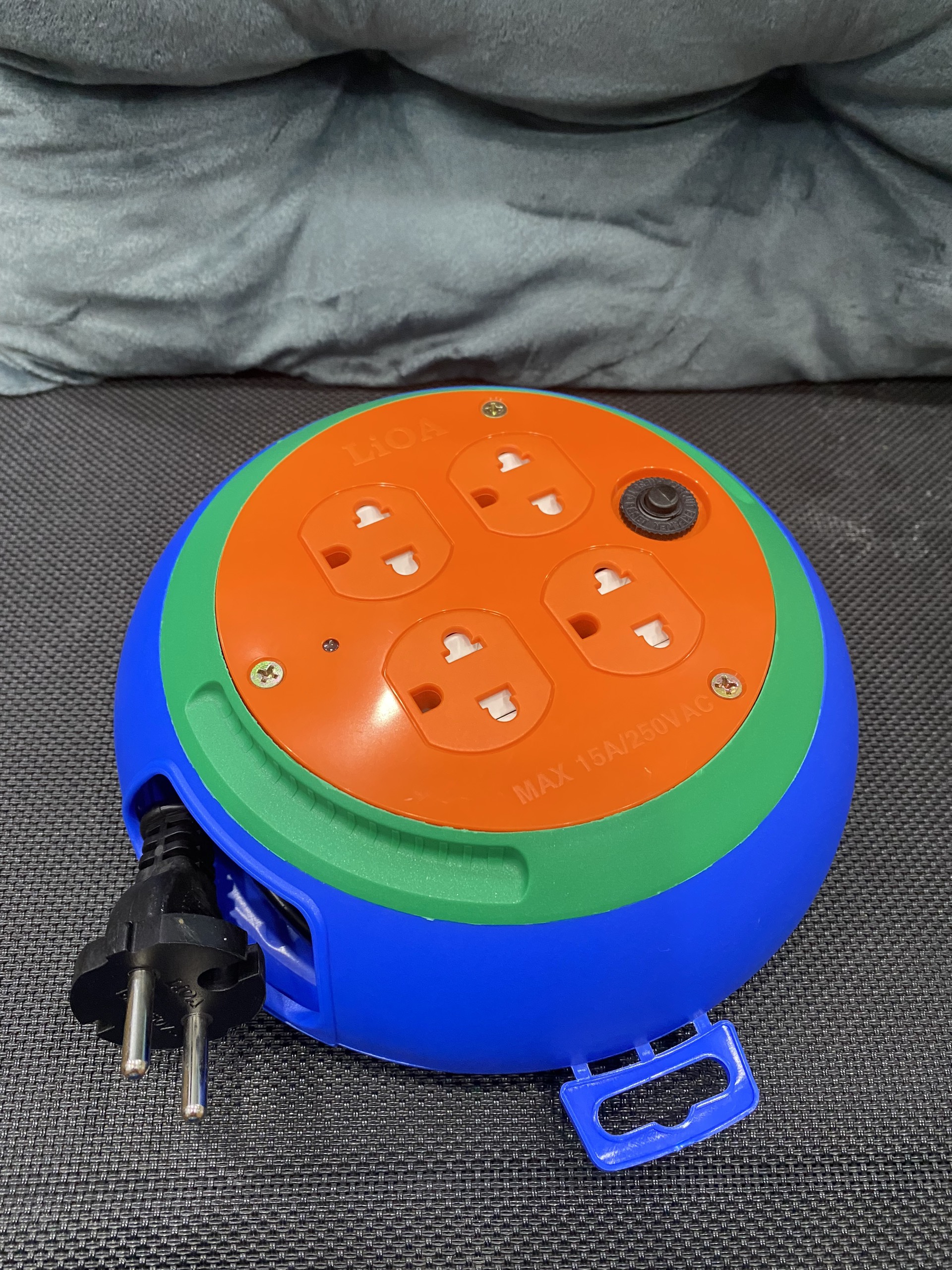 - Ổ cắm kéo dài quay tay kiểu Rulo to LiOA QT30-2-15A hoạt động với công suất 15A, bảo vệ chống quá tải bằng aptomat kết hợp cùng 3 ổ cắm 3 chấu, giúp bạn