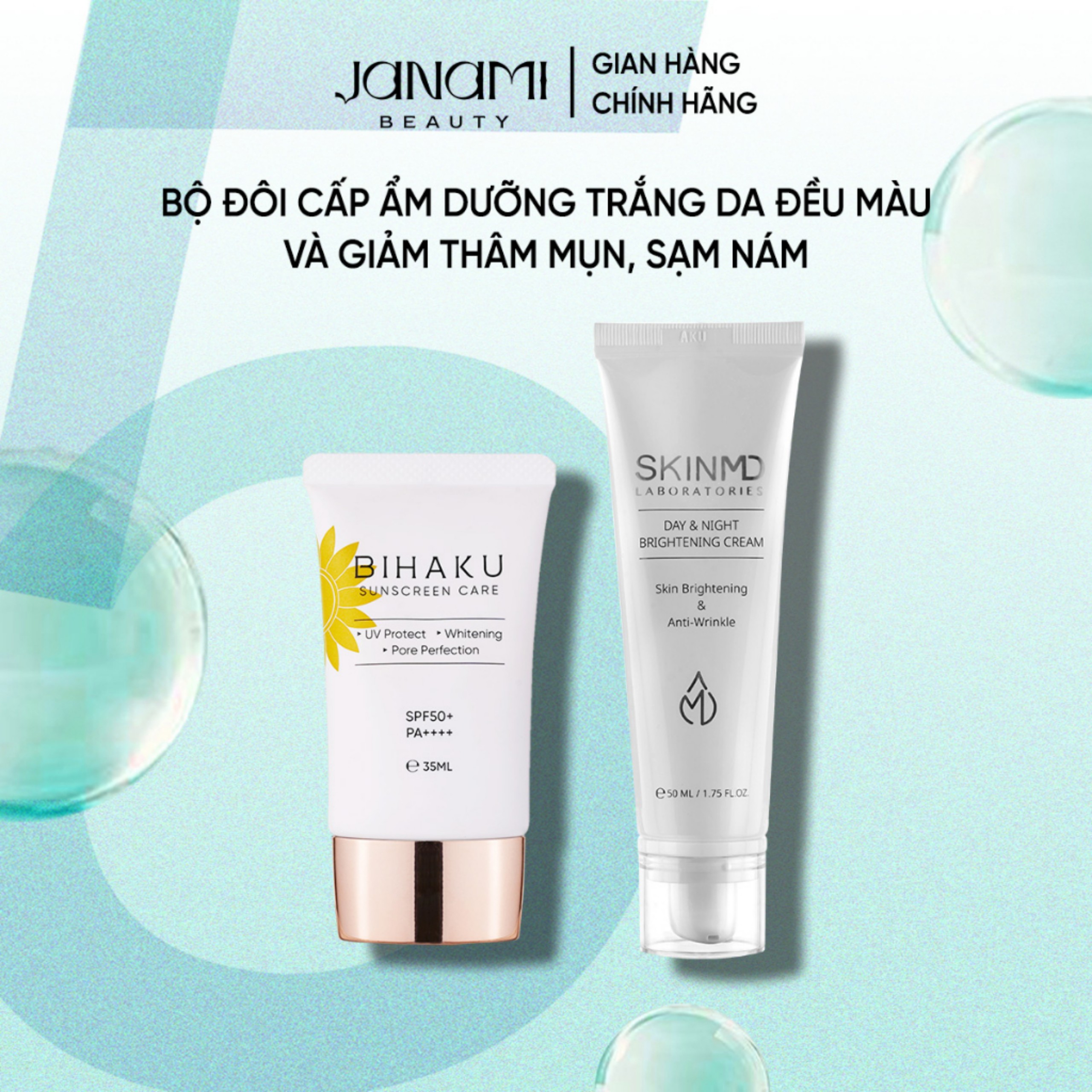 ✨ộ đôi chống nắng mờ nám BIHAKU SUNSCREEN CARE SPF50+ PA++++ 35g và SKINMD DAY & NIGHT BRIGHTENING CREAM 50g giúp làm mờ nếp nhăn sáng da