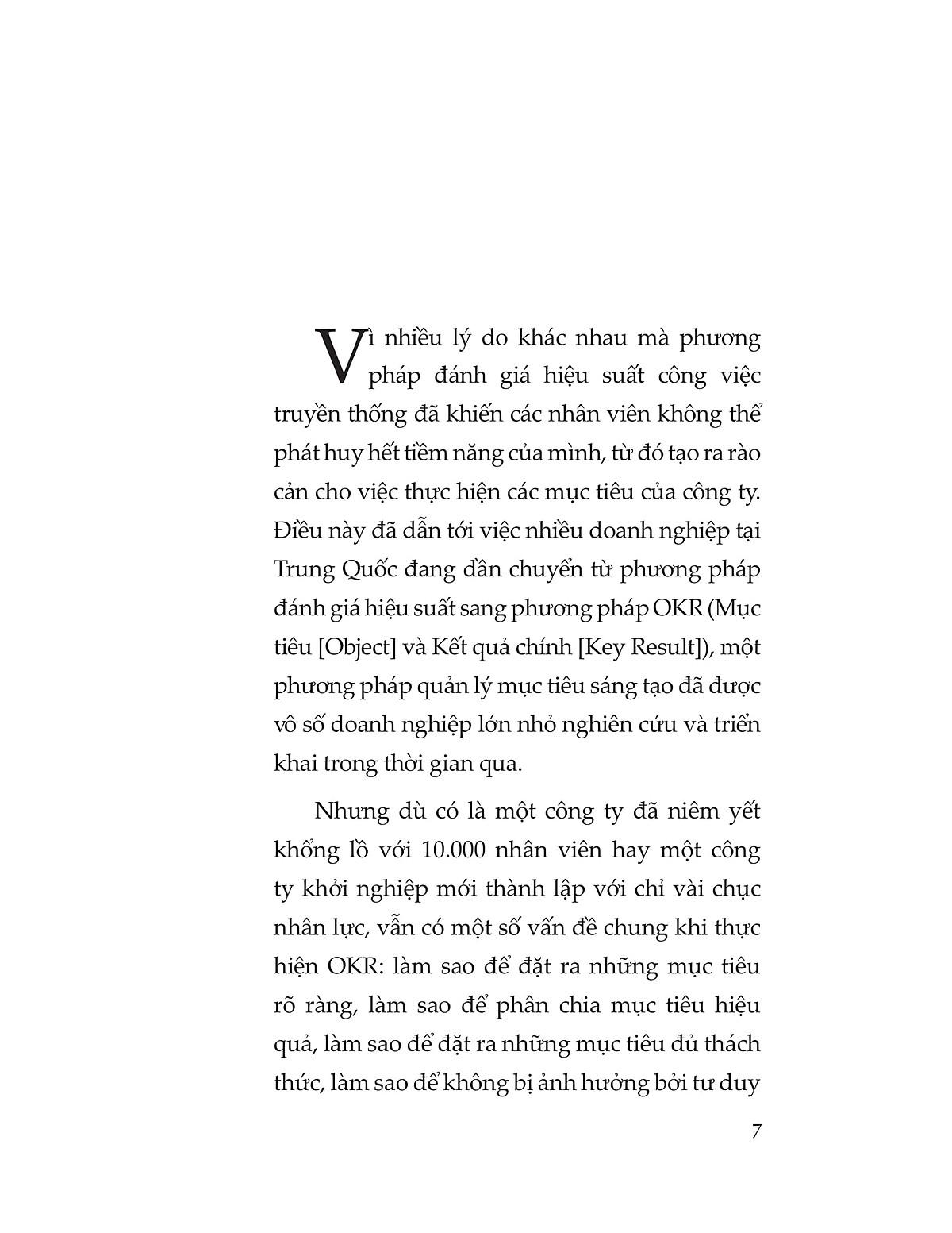 Cuốn sách cung cấp các khái niệm căn bản nhất về OKR, phù hợp cho những người mới tiếp cận và tìm hiểu về phương pháp quản lý này. Sách gồm 6 chương: