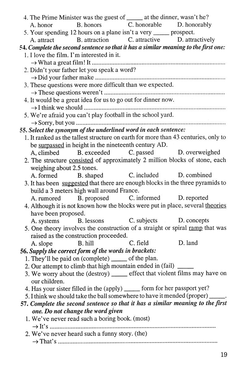 Cấu trúc đề thi và bài tập đều được chọn lọc theo tiêu chí: sát với đề thi nhất có thể. Lời giải chi tiết cũng được cải tiến, giúp các em hiểu sâu vấn đề, các từ vựng trong bài đều được giải nghĩa và cung cấp ví dụ cùng lời dịch. Như vậy, ngoài việc hiểu từ ra, các em còn biết được cách dùng từ - một yếu tố vô cùng hữu ích để làm tốt phần tự luận hoàn thiện câu và viết câu.