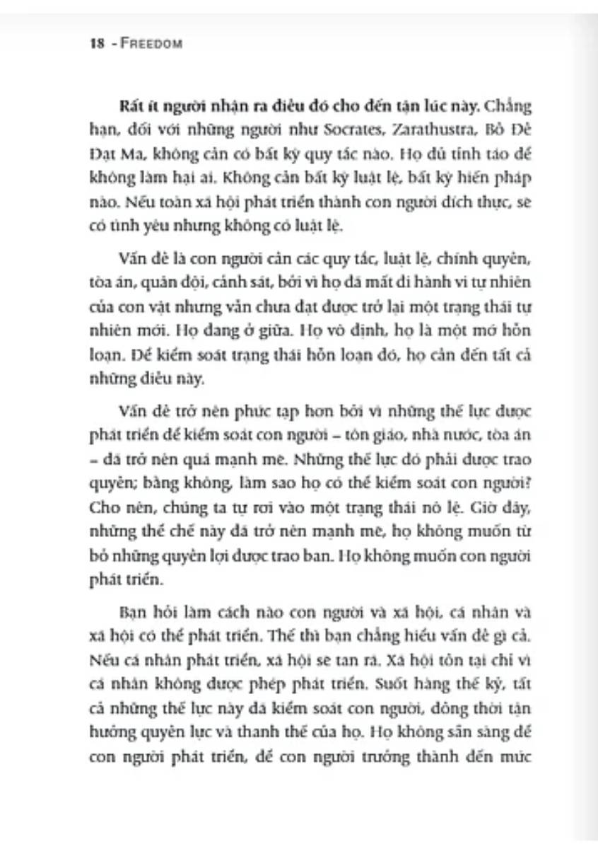 Osho - Tự Do - Như Chim Tung CánhOsho đã bàn về nhiều chủ đề: tình yêu, cảm xúc, sự sáng tạo, từ bi,… Ở tác phẩm “Tự do – Như chim tung cánh”, ông bàn đến một trong những vấn đề quan trọng nhất đối v...