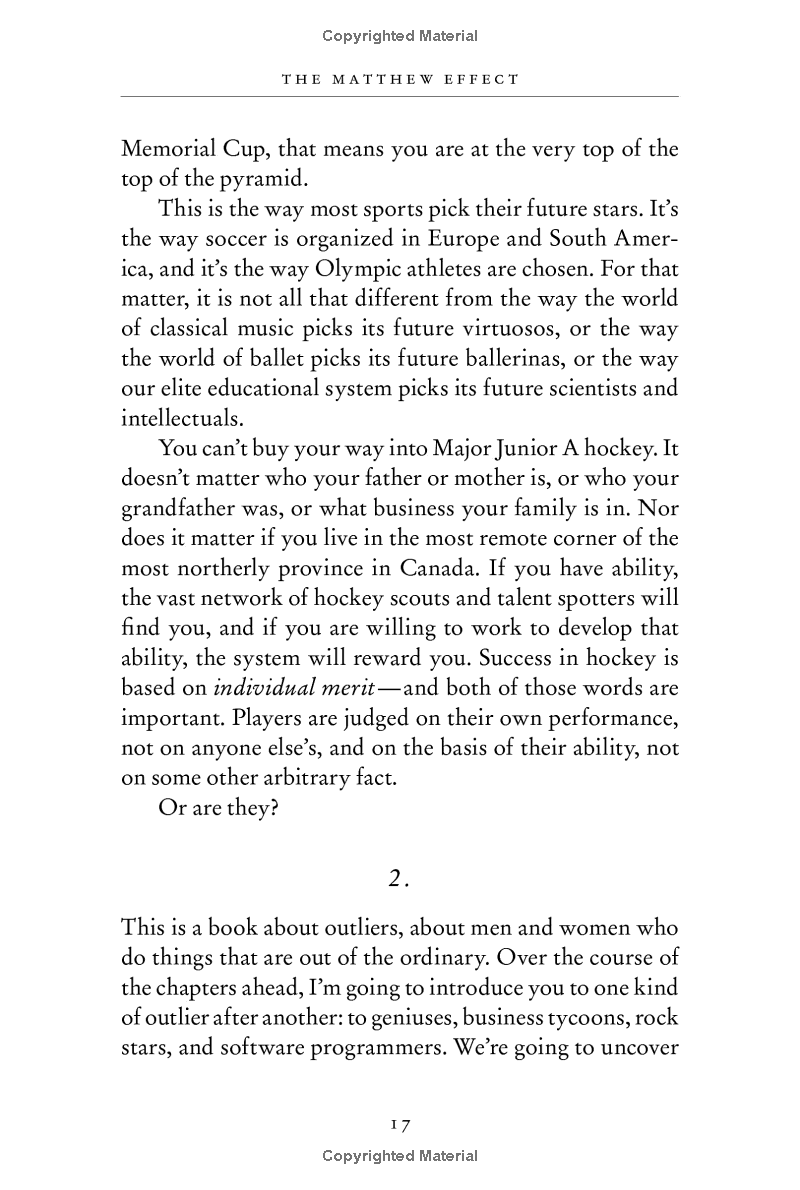 Why are people successful For centuries, humankind has grappled with this question. In this stunning new book, Gladwell takes us on an invigorating intellectual journey to show us what makes an overachiever. He reveals that we pay far too much attention to what successful people are like, and too little attention to where successful people are from: their culture, their family, and their generation. Gladwell examines how the careers of Bill Gates and the performance of world-class football players are alike; what top fighter pilots and The Beatles have in common; and why it is correct to say that the mathematician who solved Fermat's Theorem is not a genius