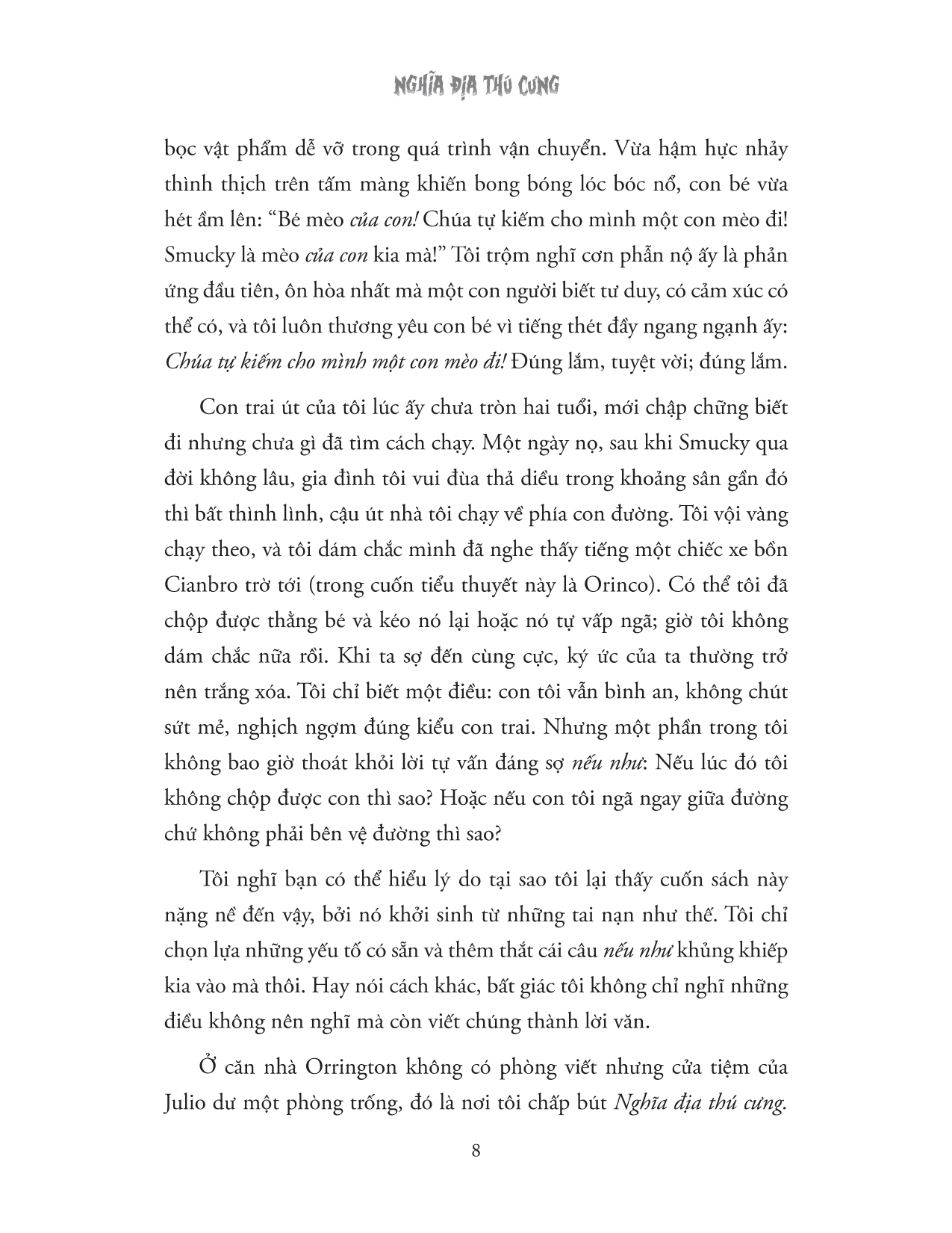Pet Sematary - Nghĩa Địa Thú Cưng   Khi Tiến sĩ Louis Creed nhận một công việc mới và đã cùng cả gia đình chuyển đến thị trấn nông thôn bình dị ở Ludlow, Maine. Ngay cả khi đã yên ấm trong căn nhà mới, Louis vẫn không thể tin nổi khởi đầu tuyệt vời này đã trở thành sự thật. Bất chấp sự yên bình của vùng quê Ludlow, nơi đây vẫn tiềm ẩn một mối nguy đang rình rập. Những chiếc xe tải lao vun vút trên con đường phía bên ngoài ngôi nhà cổ xinh đẹp của Creed vì một điều…   Khu nghĩa địa tạm bợ trong khu rừng gần đó, nơi nhiều thế hệ trẻ em đã chôn cất những con thú cưng yêu quý của chúng.   Ngay sau đó, Louis liên tiếp nhận được những lời cảnh báo từ cả thực tế lẫn từ sâu thẳm trong cơn ác mộng của anh rằng anh đừng mạo hiểm vượt ra ngoài ranh giới của nghĩa địa nhỏ này, cũng là vị trí của một khu chôn cất khác với những lời hứa đầy hấp dẫn và ma mị.   Louis đã bước chân vào hành trình khám phá ra sự thật bị che giấu ấy – một sự thật còn đáng sợ hơn chính cái chết.   Về tác giả:   Stephen King là tác giả của hơn 60 cuốn sách, tất cả đều là những cuốn sách bán chạy nhất trên toàn thế giới. Các tác phẩm gần đây của ông bao gồm Fairy Tale, Billy Summers, If It Bleeds, The Institute, Elevation, The Outsider, Sleeping Beauties (viết chung với con trai Owen King), và bộ ba phim Bill Hodges: End of Watch, Finders Keepers và Mr. Mercedes (chiến thắng Giải thưởng Edgar cho Tiểu thuyết hay nhất). Cuốn tiểu thuyết 22/11/63 được The New York Times Book Review bình chọn là cuốn sách hay nhất của năm 2011 và giành được Giải thưởng Sách của Thời báo Los Angeles cho thể loại Bí ẩn / Kinh dị. Các tác phẩm The Dark Tower, It, Pet Sematary và Doctor Sleep của ông đã được chuyển thể thành phim, với It hiện là phim kinh dị có doanh thu cao nhất mọi thời đại. Ông là người đã nhận được Giải thưởng Thành tựu trọn đời của Hiệp hội Nhà xuất bản Âm thanh năm 2020, Giải thưởng Dịch vụ Văn học PEN Hoa Kỳ năm 2018, Huy chương Nghệ thuật Quốc gia năm 2014 và Huy chương của Quỹ Sách Quốc gia năm 2003 cho những đóng góp xuất sắc cho nền văn học Hoa Kỳ. Anh sống ở Bangor, Maine, với vợ, tiểu thuyết gia Tabitha King.   Đánh giá về cuốn sách   Hai lần được chuyển thể thành phim (1989 và 2019). Pet Sematary bản 1989 được đánh giá là một trong những phim kinh dị "cult culture" (những bộ phim không được giới phê bình đánh giá cao, không có doanh thu lớn, không được công chúng yêu thích, nhưng được một nhóm nhỏ yêu thích cuồng nhiệt). Nhận được tận 6,6 điểm trên IMDb, có số lượng DVD bán ra rất chạy, và được nhắc đến nhiều trong các bộ phim khác. Đây là một trong những tiểu thuyết kinh dị xuất sắc và mang tính biểu tượng nhất của Stephen King.   “Hoang dại, rùng rợn và gây bấn loạn” là những tính từ mà tờ The Washington Post Book World đã dùng để miêu tả về cuốn sách bán chạy số 1 theo bình chọn của New York Times này.   Một thước phim hành động nghẹt thở! Một trong những tiểu thuyết kinh dị xuất sắc và mang tính biểu tượng nhất của Stephen King.   “Cuốn tiểu thuyết đáng sợ nhất của Stephen King.” —Publishers Weekly   “Một tác phẩm gây choáng vá King đã khiến chúng ta phải tin những điều không tưởng.” —Detroit News   “Day dứt, cuộn trào, thuyết phục và đầy ấn tượng!” —Pittsburgh Press