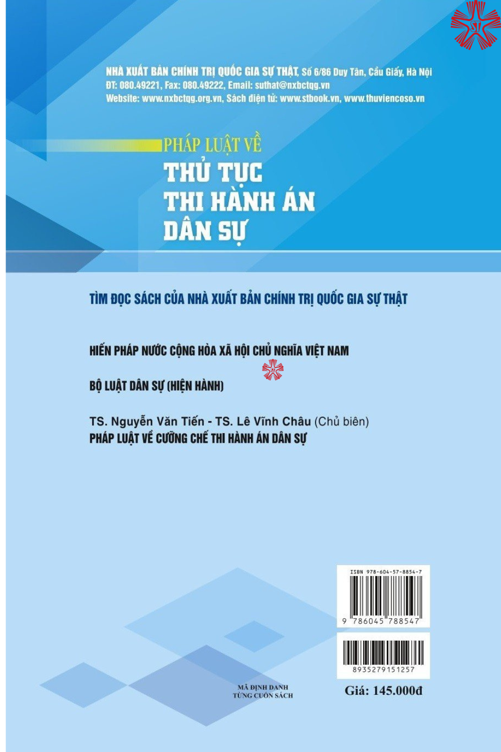 Pháp Luật Về Thủ Tục Thi Hành Án Dân Sự Tác giả: TS. Lê Vĩnh Châu (chủ biên) Nhà xuất bản: Chính Trị Quốc Gia Sự Thật Khổ sách: 16*24cm Phát hành: 8.2023 Công ty