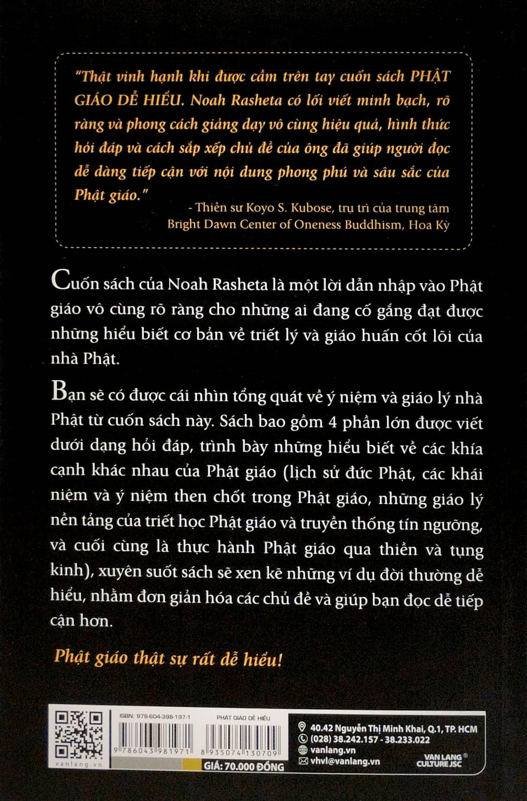 “Thật vinh hạnh khi được cầm trên tay cuốn sách Phật giáo dễ hiểu. Noah Rasheta có lối viết minh bạch, rõ ràng và phong cách giảng dạy vô cùng hiệu quả, hình thức hỏi đáp và cách sắp xếp chủ đề của ông đã giúp người đọc dễ dàng tiếp cận với nội dung phong phú và sâu sắc của Phật giáo.”