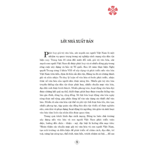Nhằm giúp bạn đọc có thêm tài liệu tham khảo về những vấn đề nêu trên, Nhà xuất bản Chính trị quốc gia Sự thật xuất bản cuốn sách Phát huy giá trị văn hóa, sức mạnh con người Việt Nam trong công cuộc xây dựng và phát triển đất nước (Sách chuyên khảo) do PGS.TS. Nguyễn Duy Bắc và PGS.TS. Vũ Thị Phương Hậu đồng chủ biên.