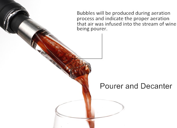 Vòi rót rượu vang sục khí đôi đễ dàng để phục vụ rượu vang với hệ thống nạp khí và bộ lọc trộn không khí.
