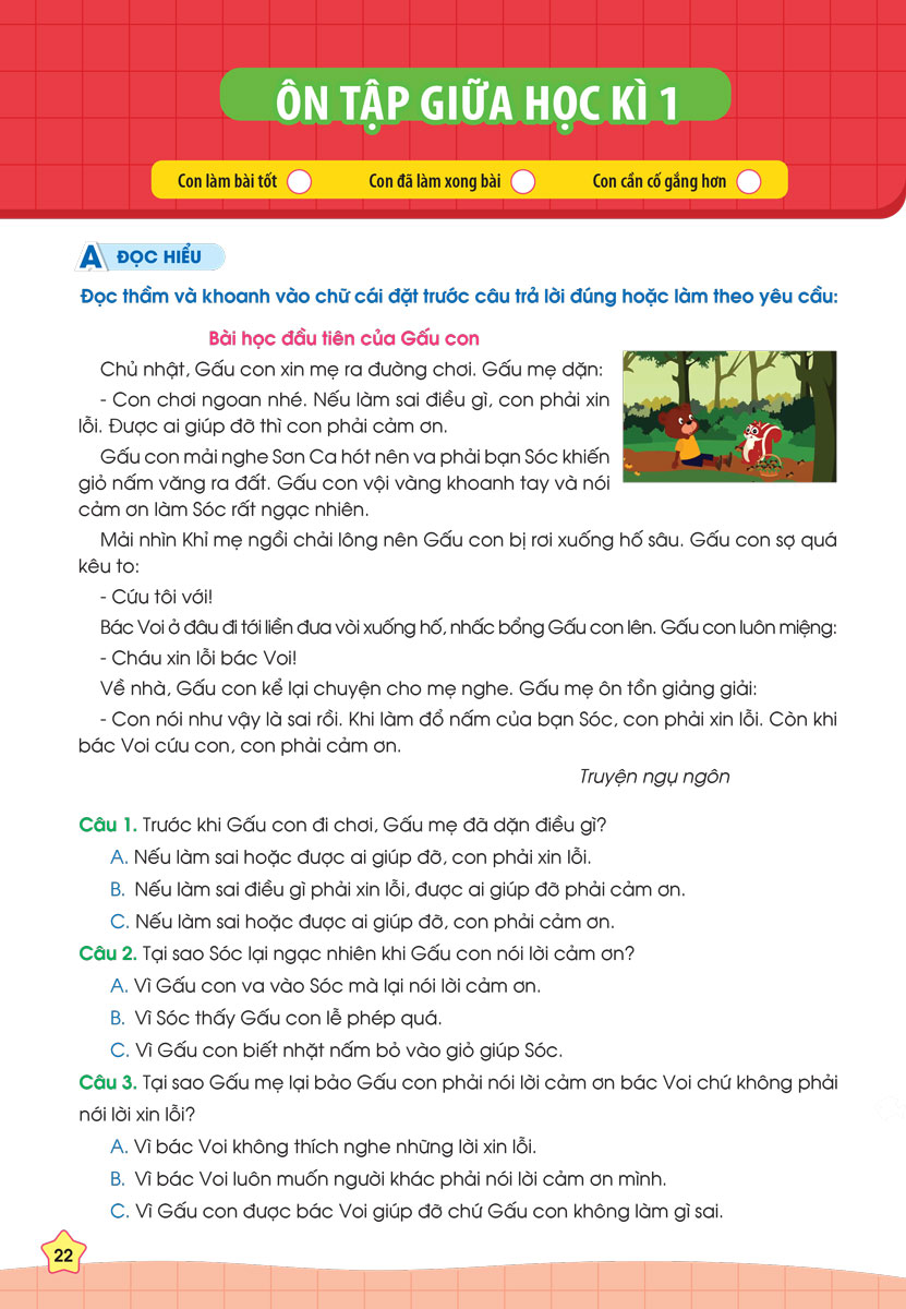 Đặc biệt, sau mỗi kì sẽ có bài ôn tập giữa kì và cuối kì giúp con có tài liệu ôn tập cho các kì kiểm tra. Ngoài ra, phần đáp án phía sau giúp bố mẹ đánh giá năng lực, từ đó có phương pháp ôn luyện phù hợp cho con.