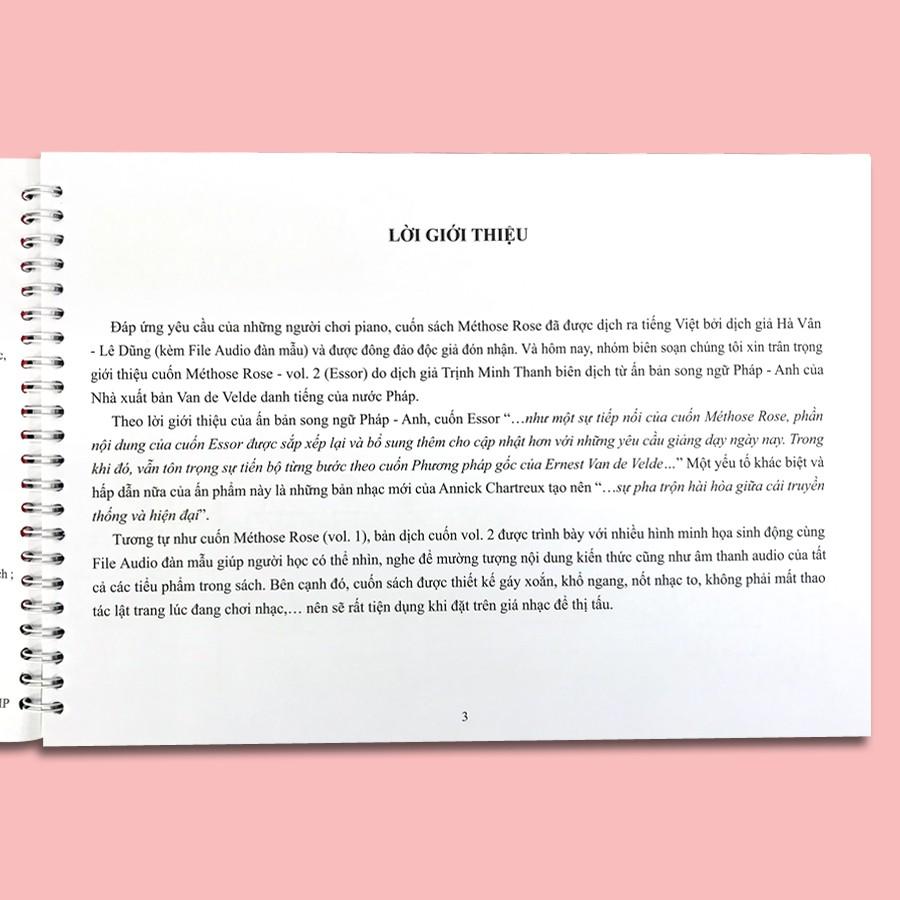Mua tại TiktokCuốn Méthode Rose - vol. 2 (Essor) được biên dịch từ ấn bản song ngữ Pháp-Anh của Nhà xuất bản Van de Velde danh tiếng của nước Pháp. Tương tự như cuốn vol. 1, bản dịch cuốn sách này được trình bày với nhiều hình minh họa sinh động cùng file Audio đánh mấu giúp người học có thể nhìn, nghe để mường tượng nội dung kiến thức cũng như âm thanh audio của tất cả các tiểu phẩm trong sách. Bên cạnh đó, cuốn sách được thiết kế gáy xoắn, khổ ngang, nốt nhạc to, không phải mất thao tác lật trang lúc đang chơi nhạc, nên sẽ rất tiện dụng khi đặt trên giá nhạc để thị tấu.