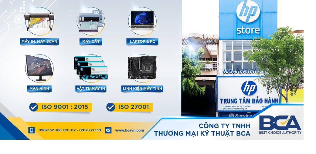 CAM KẾT HÀNG CHÍNH HÃNG 100% CÔNG TY TNHH THƯƠNG MẠI KỸ THUẬT BCA vinh dự được HP Việt Nam xác nhận và chứng thực là đối tác được ủy quyền kinh doanh sản phẩm
