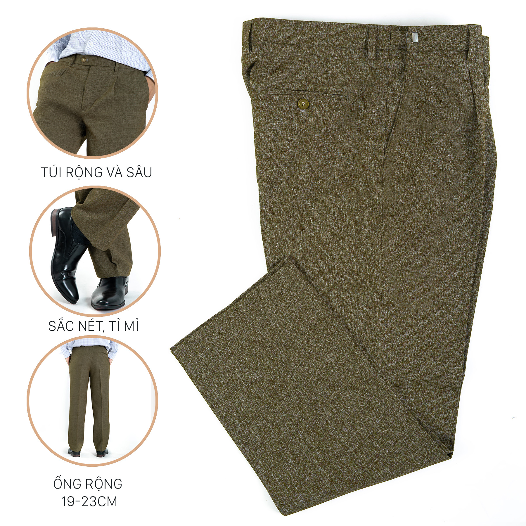 Quần âu Anton dáng rộng, xếp li, chỉnh cạp cho trung niên