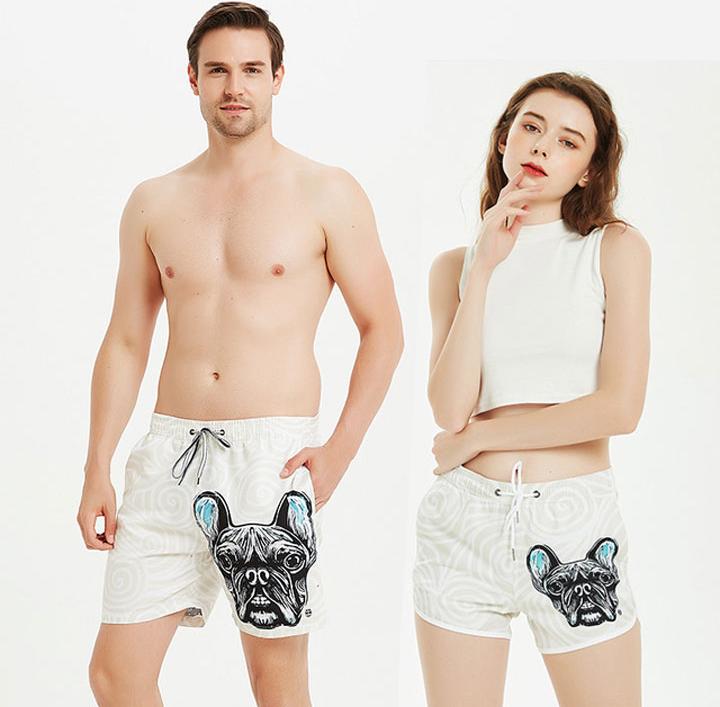 Quần Đi Biển Đôi - Quần Đùi Đôi - Thời Trang Đôi Mùa Hè - Quần Short Cặp Đôi SQ220 White Pug   Quần Cặp Đi Biển, Quần Cặp – một item thời trang  dường như