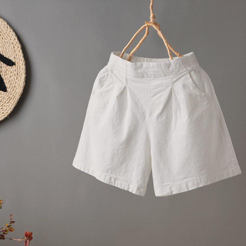 quần đùi nữ mặc nhà mặc đi chơi ống rộng chất vải đũi mềm mát thấm hút mồ hôi dễ chịu - Q366