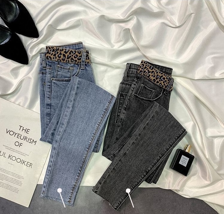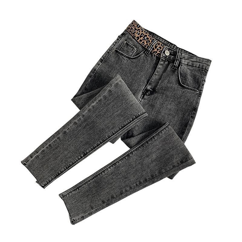 ✨Quần jeans nữ lưng cao ôm cách điệu phân nịt họa tiết da beo cá tính