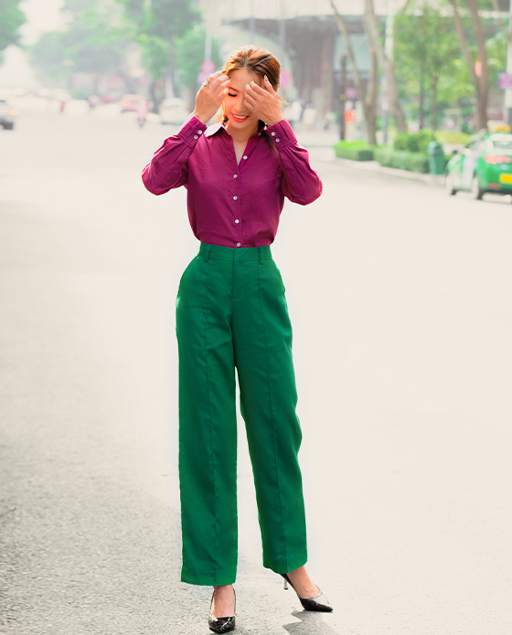 Màu trắng và xanh lá quần ống suông và áo nữ công sở #thoitrangthuy #maydoonline