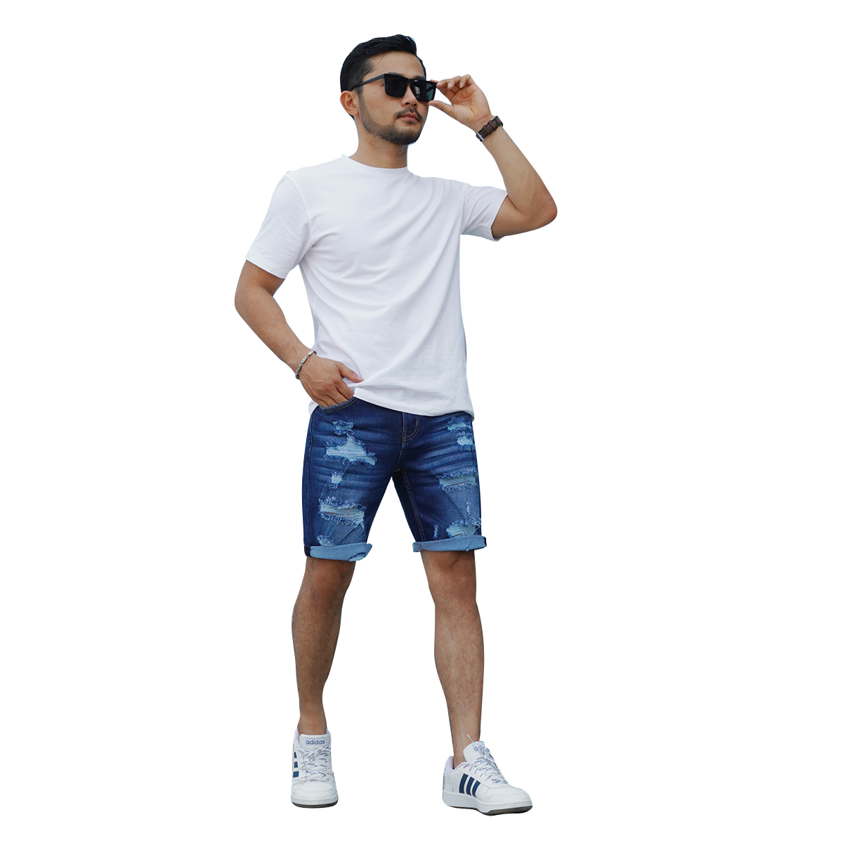 Quần short jeans nam ống ôm form slimfit thun nhẹ màu xanh căn bản S39 | Hunter X-Rays