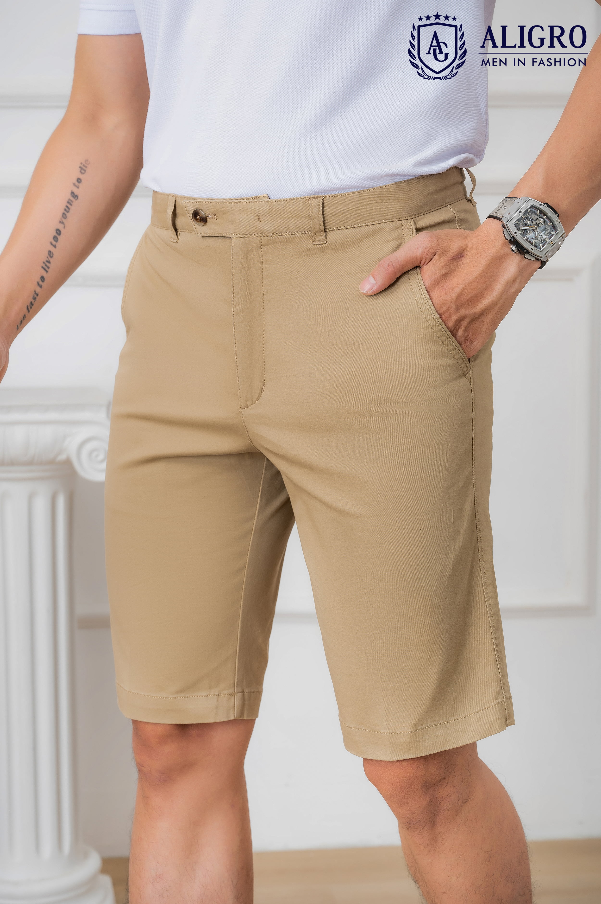 Mua tại TiktokGIỚI THIỆU THƯƠNG HIỆU Mang trong mình tầm nhìn chiến lược trở thành thương hiệu “Thời trang nam được yêu thích nhất Việt Nam” nên Aligro luôn chú trọng nghiên cứu phát triển mẫu mã, phom dáng phù hợp với vóc dáng hình thể đàn ông Việt. Sản phẩm của chúng tôi mang tới hình ảnh trẻ trung, năng động, hiện đại mà không kém phần lịch sự, sang trọng - cam kết mang lại giá trị đích thực và một cuộc sống thịnh vượng hơn cho phái mạnh Việt. CHI TIẾT THIẾT KẾ QUẦN SHORT KAKI NAM ALIGRO