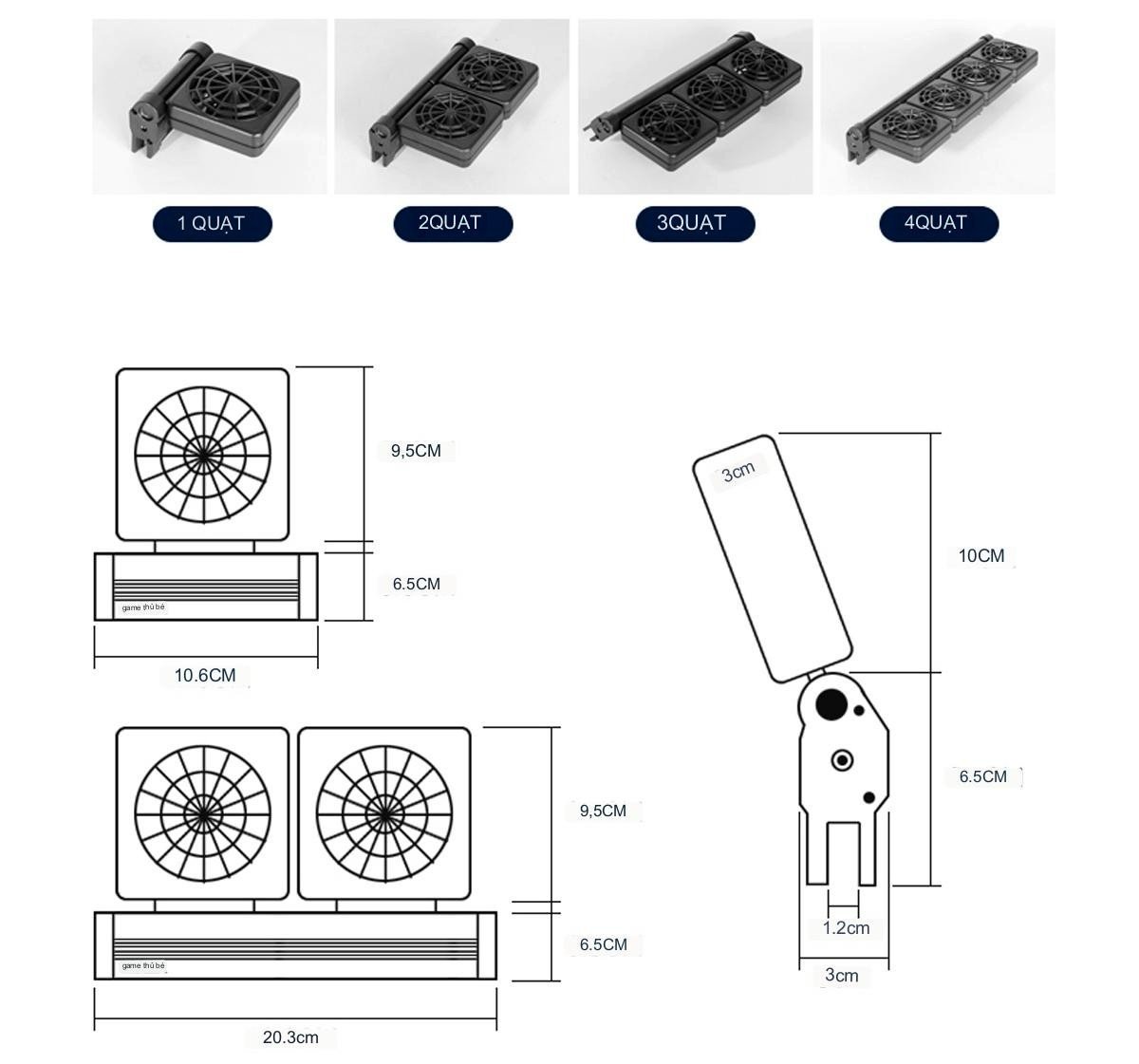 Thông số kỹ thuật của quạt làm mát hồ cá: Màu sắc: Đen Chất liệu: Nhựa Loại: 3 Quạt Phù hợp bể kính: dày 2 - 12mm (có thể điều chỉnh) Làm lạnh 2-4 độ Adapter Chuyển Đổi AC: 100-240V 50/60Hz Nguồn Điện: DC 12V 0.6A BH 03 tháng Quạt 3 Fan: cho bể 60cm - 80cm Bộ sản phẩm : Quạt bể cá x bộ chuyển đổi nguồn điện