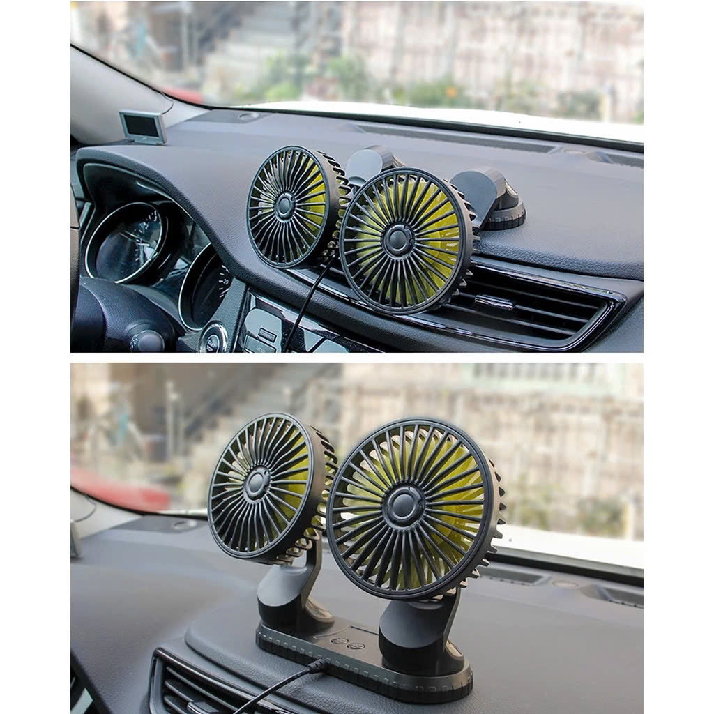 ️ Quạt Đôi Mini Cao Cấp Xoay 360° – Làm Mát Không Khí Trên Ô Tô, Bàn Làm Việc, Cổng USB – Loại Tốt, Tích Điện Tiện Dụng