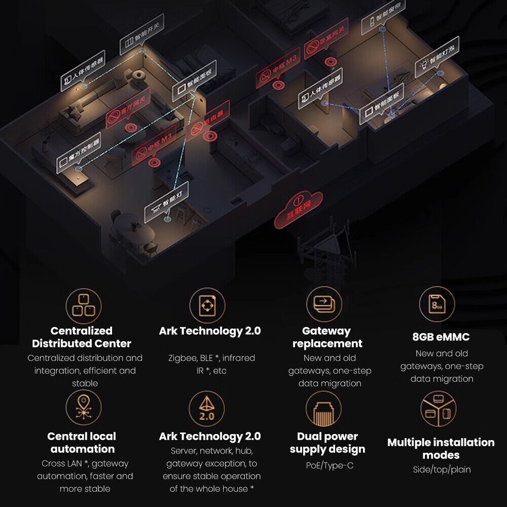 Hỗ trợ Zigbee 3.0, Bluetooth 5.1, Wifi và MatterTương thích Apple Homekit, Google Home, AlexaSở hữu eMMC 8GB tăng độ bảo mật cho dữ liệuCông nghệ hiện đại với MagicPair và Ark 2.0Tích hợp bộ điều...