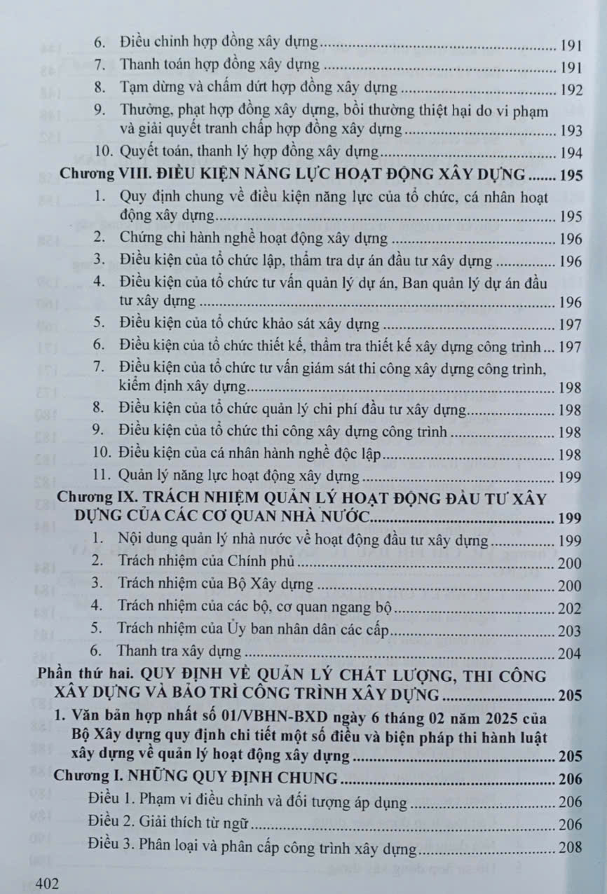Quy định chi tiết thi hành Luật Xây Dựng về quản lý chất lượng, thi công xây dựng và bảo trì công trình xây dựng Tác giả: Tài Thành (Hệ thống) Nhà xuất bản: Hồng Đức Công ty phát hành: Công ty TNHH Sách Luật VN Ngày xuất bản: 3.2025 Số trang: 406 trang Khổ sách: 19×27 cm Giá bìa 395.000 Thời gian qua Quốc hội, Chính phủ và Bộ ngành đã ban hành nhiều văn bản Luật liên quan đến Luật Xây dựng và nhiều Nghị định mới như: Nghị định số 175/2024/NĐ-CP ngày 30 tháng 12 năm 2024 quy định chi tiết một số điều và biện pháp thi hành Luật Xây dựng về quản lý hoạt động xây dựng. Thông tư số 10/2024/TT-BXD ngày 01 tháng 11 năm 2024 của Bộ Xây dựng về quản lý chất lượng sản phẩm, hàng hóa vật liệu xây dựng. Thông tư số 02/2024/TT-BXD ngày 20 tháng 5 năm 2024 của Bộ Xây dựng hướng dẫn xác định và quản lý chi phí quy hoạch chi tiết theo quy trình rút gọn… Nhằm có tài liệu tuyên truyền những quy định pháp luật mới trên đến các cơn quan, đơn vị, doanh nghiệp và cá nhân liên quan có tài liệu tham khảo áp dụng trong công việc Nhà xuất bản Hồng Đức xuất bản cuốn sách: QUY ĐỊNH CHI TIẾT THI HÀNH LUẬT XÂY DỰNG VỀ QUẢN LÝ CHẤT LƯỢNG, THI CÔNG XÂY DỰNG VÀ BẢO TRÌ CÔNG TRÌNH XÂY DỰNG Nội dung cuốn sách gồm các phần sau: Phần thứ nhất. NHỮNG QUY ĐỊNH MỚI VỀ LUẬT XÂY DỰNG Phần thứ hai. QUY ĐỊNH VỀ QUẢN LÝ CHẤT LƯỢNG, THI CÔNG XÂY DỰNG VÀ BẢO TRÌ CÔNG TRÌNH XÂY DỰNG Phần thứ ba. HƯỚNG DẪN QUY TRÌNH ĐÁNH GIÁ AN TOÀN CÔNG TRÌNH, QUẢN LÝ CHẤT LƯỢNG SẢN PHẨM, HÀNG HÓA VẬT LIỆU XÂY DỰNG, HƯỚNG DẪN XÁC ĐỊNH VÀ QUẢN LÝ CHI PHÍ QUY HOẠCH CHI TIẾT THEO QUY TRÌNH RÚT GỌN Trong quá trình hệ thống không tránh khỏi những sơ sót nhất định, chúng tôi mong muốn nhận được những góp ý từ bạn đọc để cuốn sách được hoàn thiện trong những lần tái bản sau.