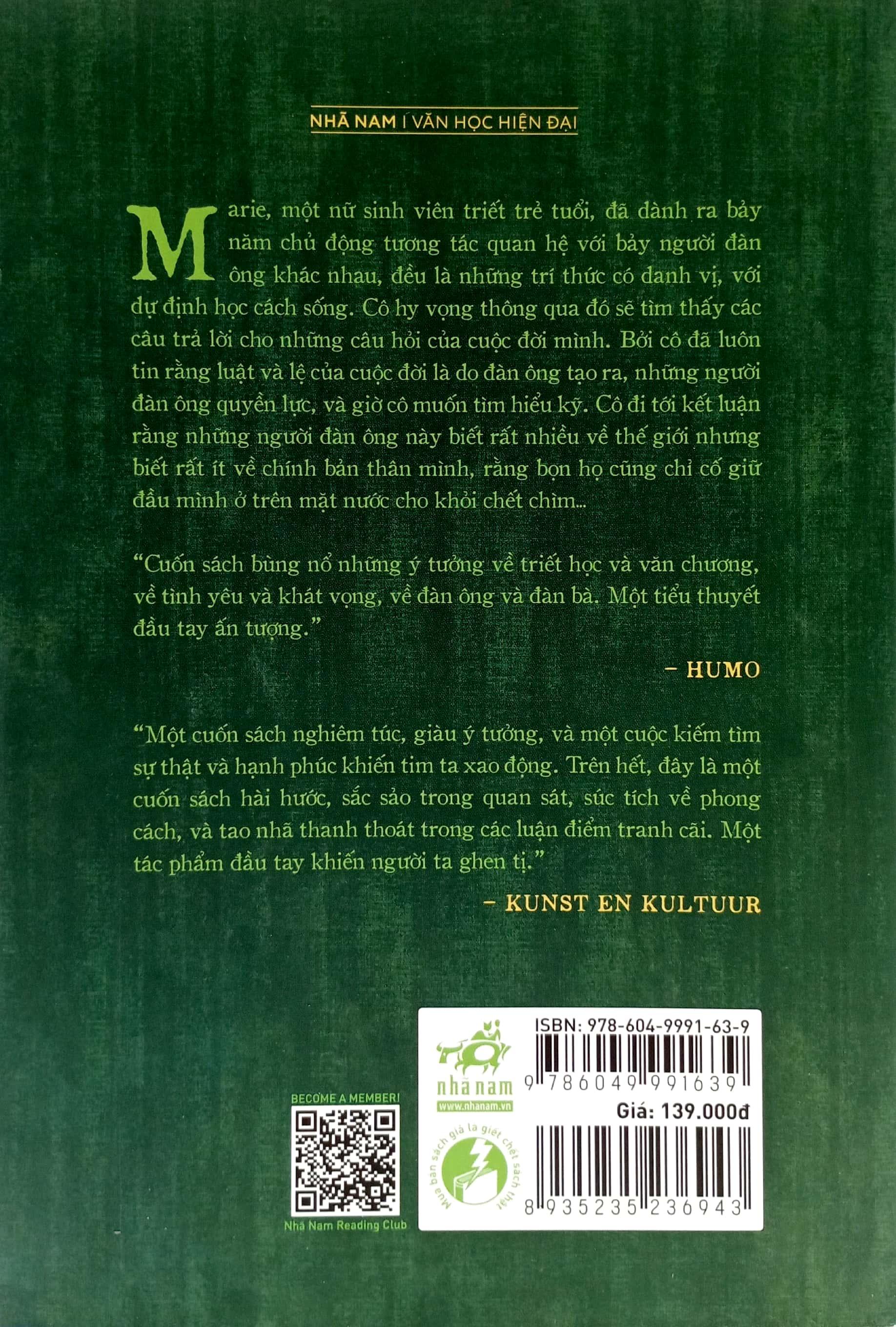 Marie, một nữ sinh viên triết trẻ tuổi, đã dành ra bảy năm chủ động tương tác quan hệ với bảy người đàn ông khác nhau, đều là những trí thức có danh vị, với dự định học cách sống. Cô hy vọng thông qua đó sẽ tìm thấy các câu trả lời cho những câu hỏi của cuộc đời mình. Bởi cô đã luôn tin rằng luật và lệ của cuộc đời là do dàn ông tạo ra, những người đàn ông quyền lực, và giờ cô muốn tìm hiểu kỹ. Cô đi tới kết luận rằng những người đàn ông này biết rất nhiều về thế giới nhưng biết rất ít về chính bản thân mình, rằng bọn họ cũng chỉ cố giữ đầu mình ở trên mặt nước cho khỏi chết chì