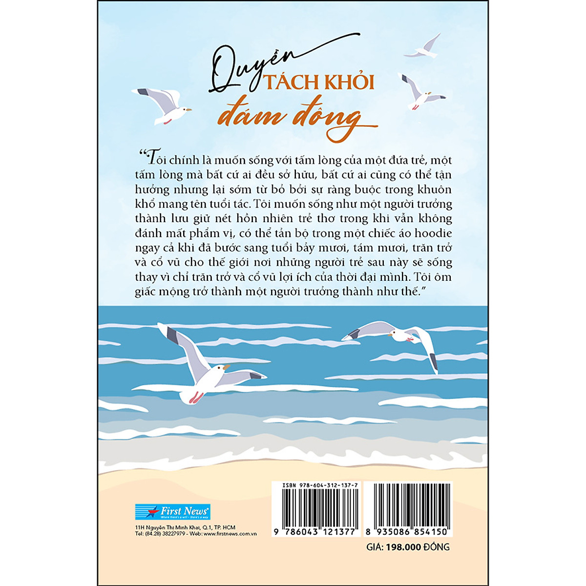 “Quyền tách khỏi đám đông” được xem như một cuốn cẩm nang, chứa đầy những bí kíp giúp người đọc khám phá những bí ẩn của hành động “không làm gì” – chính là giai đoạn quan trọng để biết chính mình, độ lượng với chính mình để tích góp năng lượng cho một hành trình mới. Tác giả đã chia sẻ những điều rất thú vị như Không đặt mục tiêu 100 điểm, Bước đi theo tốc độ của riêng mình, hay Thử một ngày sống trọn con Bên cạnh đó, Heejae Jung cũng bàn đến cách hóa giải những điều tiêu cực trong cuộc sống để chúng thôi làm bạn phiền lòng, như Không chán ghét một tôi rỗng túi và thoái chí, Chung sống với sai lầm, hay Dù mọi người can ngă Từ đó, bạn sẽ tự mình nhận ra đâu mới là hạnh phúc thật sự, và làm thế nào để có được nó.