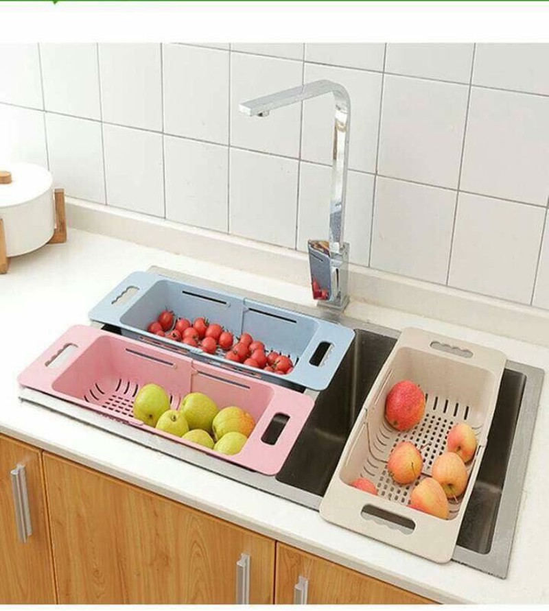 Rổ nhựa ráo nước gác bồn rửa chén có thể kéo dài - Tiện lợi