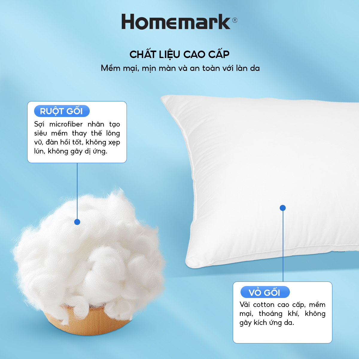 ✨Ruột Gối Microfiber Lông Vũ Nhân Tạo Homemark - Siêu Mềm, Chống Xẹp, Thoáng Khí, Kháng Khuẩn