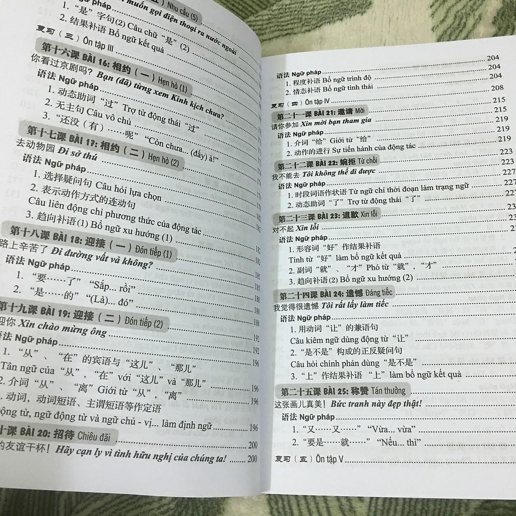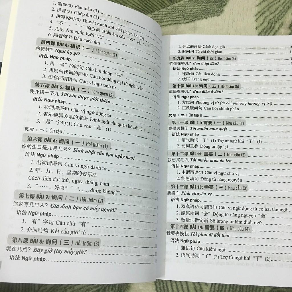 Giáo trình tiếng Trung giao tiếp tổng hợp dành cho người Việt Nam Cuốn sách có 15 bài, mỗi bài gồm: 1. Câu trọng điểm: Đưa ra trong bảng ở đầu tiên của mỗi bài,