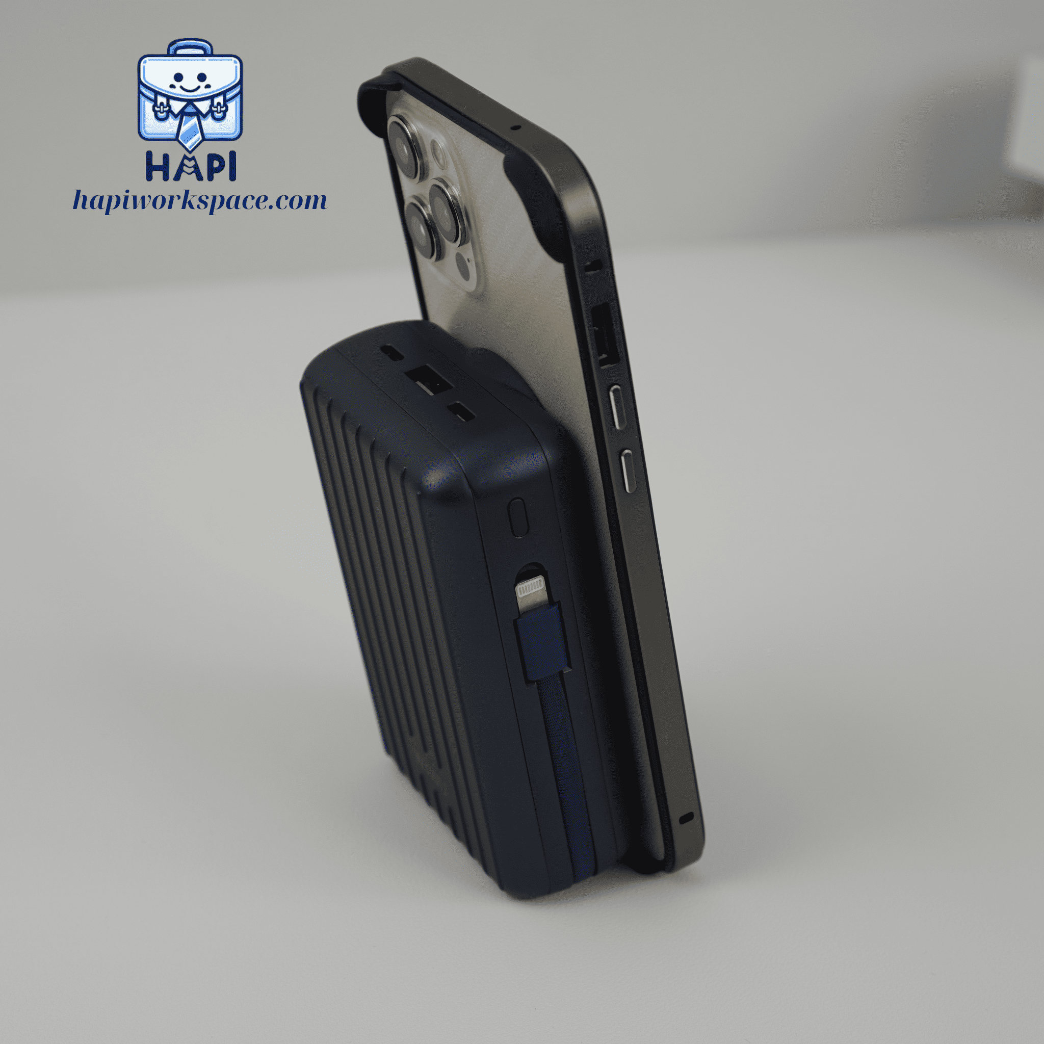 Mua tại TiktokCó hỗ trợ sạc từ tính MS không dây cho các dòng từ 12 series, vùng sạc không dây được trang bị một lớp đệm êm hạn chế làm trầy xước mặt lưng điện thoại Được trang bị 2 cáp tích hợp vô cùng tiện lợi đối với người có nhu cầu di chuyển cao Nhỏ gọn, không chiếm dụng không gian lưu trữ, thích hợp mang theo bên mình hàng ngày Có thể sạc cùng lúc nhiều thiết bị, dễ dàng đáp ứng được nhu cầu sử dụng năng lượng hàng ngày Thiết kế nổi bật với tạo hình một chiếc vali, chất liệu nhựa ABS chống cháy đạt chuẩn RoHS an toàn và thân thiện với người sử dụng THÔNG TIN CƠ BẢN