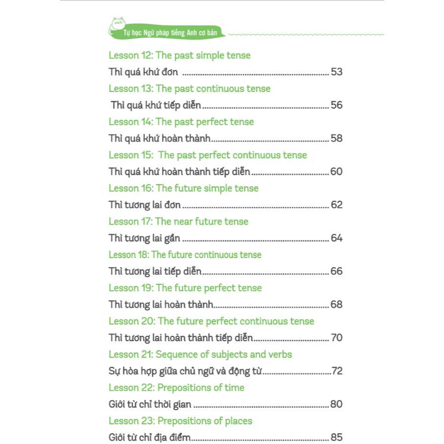Cuốn sách “Tự học ngữ pháp tiếng Anh cơ bản” gồm 54 bài học tương ứng với 54 ngữ pháp cơ bản trong tiếng Anh.