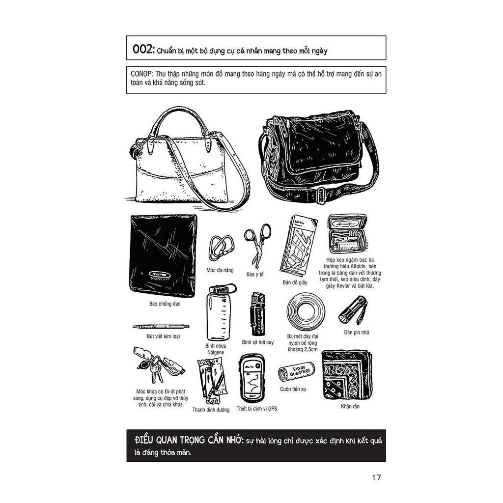 - Số trang: 272 100 KỸ NĂNG SINH TỒN – CUỐN CẨM NANG HƯỚNG DẪN VỀ CÁCH SỐNG SÓT Ở NƠI HOANG DÃ VÀ CHUẨN BỊ CHO MỌI THẢM HỌA Được viết bởi Clint Emerson – một cựu Đặc vụ SEAL, lực lượng tác chiến đặc biệt của Hải quân Hoa Kỳ, cuốn sách 100 kỹ năng sinh tồn của Đinh Tị Books là một trong những cuốn sách bán chạy của New York Times. Rõ ràng, chi tiết và được trình bày dễ hiểu, cuốn sách phác thảo những chiến lược cơ bản nhưng thiết thực giúp bảo vệ bản thân và thoát khỏi những tình huống khó khăn và nguy cấp nhất. Tác giả của cuốn sách là một cựu Đặc vụ SEAL, ông đã dành hai mươi năm chỉ đạo những chiến dịch đặc biệt trên khắp thế giới trong lúc còn gắn bó với Đội Ba SEAL, Cơ quan An ninh Quốc gia Hoa Kỳ (NSA), và Đội Sáu SEAL tinh nhuệ. Những kỹ năng bổ ích của cuốn sách "100 kỹ năng sinh tồn" như thế nào? Những kỹ năng được giới thiệu trong cuốn sách “mang tính sống còn” vì một lí do. Nhiều trong số đó được lấy cảm hứng từ những nhiệm vụ và sự huấn luyện đặc biệt của những đặc vụ thường xuyên bị đẩy đến giới hạn của sức chịu đựng, sự chuẩn xác và tài xoay xở khéo léo trong những điều kiện hiểm nghèo đe dọa đến tính mạng. Một xã hội ngày càng được kết nối toàn cầu đòi hỏi sự chỉ dẫn mới để tồn tại. Bạn sẽ làm gì nếu như một ngày bạn và những người thân yêu bị mắc kẹt giữa vùng lãnh thổ có dịch bệnh hoành hành, lạc ở nơi hoang dã, hay bị móc túi khi đi du lịch ở đất nước xa lạ? Bạn sẽ phản ứng ra sao khi bạn phải thoát ngay khỏi một vụ hỏa hoạn ở nhà cao tầng, bạn phải làm gì để cứu người thân đang mắc kẹt trong vụ hỏa hoạn đó…? Bản kế hoạch thu nhỏ? Tại sao không? Cuốn sách là một bản kế hoạch chi tiết đưa chúng ta trở về những cốt lõi của những kỹ năng đã mất, dạy chúng ta cách xác định phương hướng ở những nơi thiếu vắng các biển báo đường phố hay tín hiệu vệ tinh, đồng thời chuẩn bị cho chúng ta đối mặt với nhiều mối đe dọa mới xuất hiện trong môi trường mà chúng ta đang sống. Rõ ràng, chi tiết và được trình bày dễ hiểu, cuốn sách phác thảo nhiều chi tiết chiến lược giúp bảo vệ bạn và những người bạn yêu thương vượt qua những tình huống khó khăn, nguy hiểm nhất với một sự chuẩn bị cả về vật chất và tinh thần bình tĩnh. Cuốn sách dạy bạn cách suy nghĩ và hành động như một thành viên của lực lượng quân đội tinh nhuệ Hoa Kỳ. Kết Luận Chỉ những sinh vật mạnh mẽ mới có thể sống sót, chỉ những người thông thạo và hiểu biết mới có thể phát triển. Thế giới này chưa từng trở nên an toàn hơn, vì vậy bạn hãy sẵn sàng để luôn đứng vững. Và hãy để cho cuốn sách “100 kỹ năng sinh tồn” chỉ đường cho bạn.