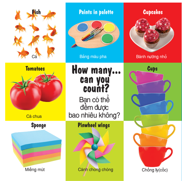 Điểm cộng của bộ sách này còn là yếu tố song ngữ Anh - Việt hấp dẫn, giới thiệu những từ vựng, hình ảnh, kiến thức cơ bản, gần gũi đầu tiên dành cho bé.