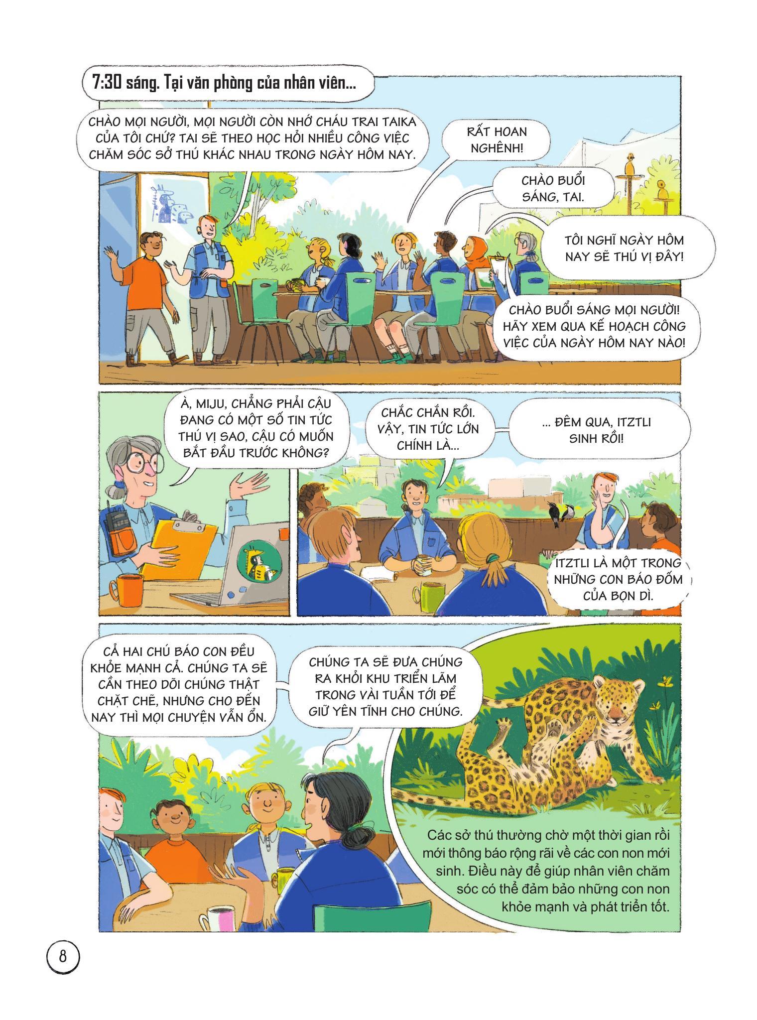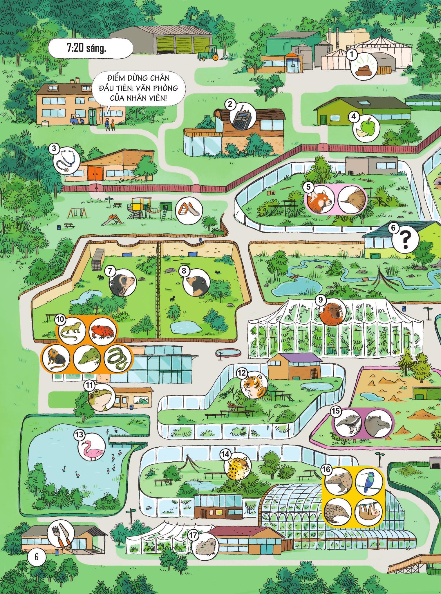 Mua tại Tiktok24 Giờ Trong Sở Thú Bạn sẽ được tìm hiểu điều gì xảy ra trong sở thú từ lúc bình minh cho đến khi màn đêm buông xuống. Người ta kiểm tra sức khỏe cho một con trăn khổng lồ ra sao, cách sở thú chuẩn bị cho sự kiện giới thiệu một động vật mới đến thế nào, điều gì sẽ xảy ra nếu một con vật bị mất tích? Và nhất là: Làm thế nào để xử lý hàng tấn chất thải động vật mỗi ngày? Quả thật, công việc tại sở thú chẳng hề đơn giản như bạn nghĩ đâu! Qua từng giờ đồng hồ, bạn đọc sẽ được tìm hiểu vô vàn những bí mật nơi "hậu trường" của sở thú đấy. Nhanh lên nào, chúng m.ình cùng khám phá ngay thôi! Sách khoa học theo định dạng truyện tranh, đưa các bạn nhỏ theo chân những nhân viên sở thú khám phá hàng trăm loài động vật trong sở thú