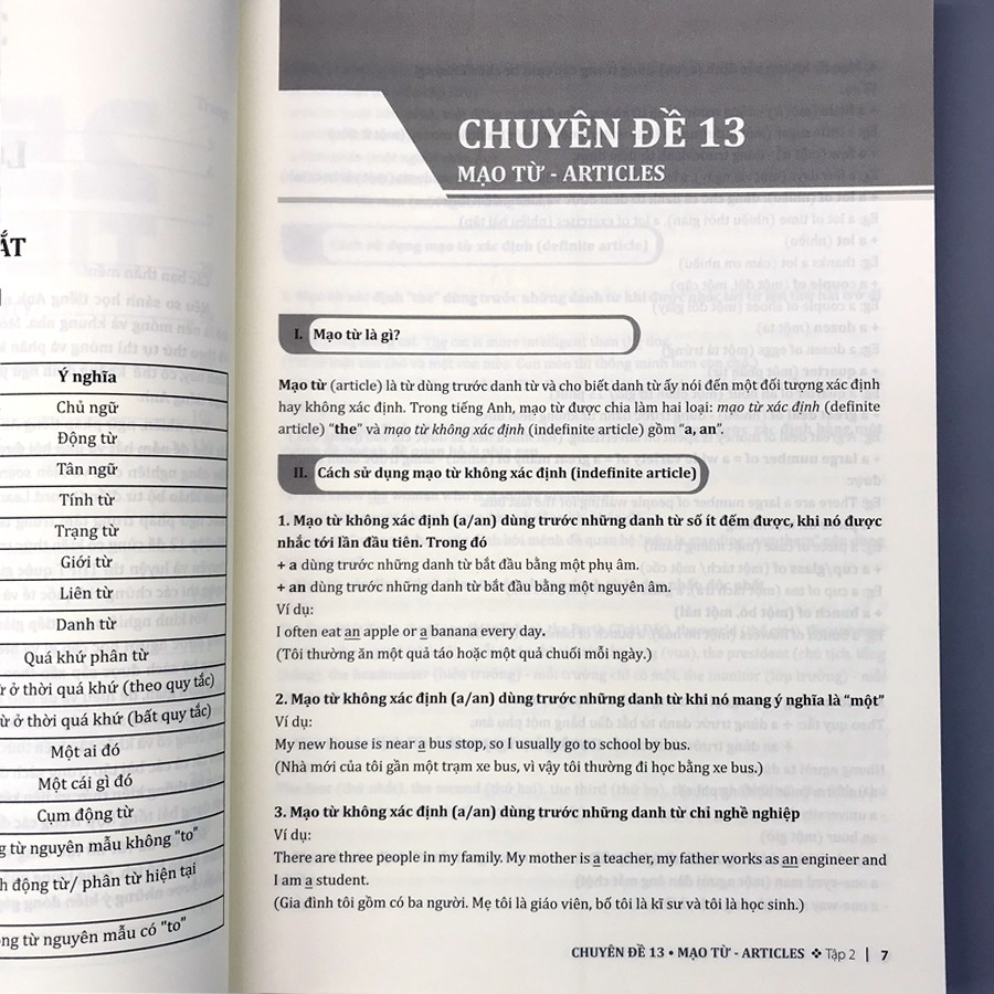 Các chuyên đề ngữ pháp trọng tâm được trình bày đơn giản, dễ hiểu cùng với hệ thống bài tập và từ vựng phong phú. Có tất cả 25 chuyên đề trong 2 tập sách, là tài liệu hữu ích cho học sinh, sinh viên, người đi làm, luyện thi cho các kỳ thi quốc gia, ôn luyện các chứng chỉ quốc tế và là tài liệu tham khảo cho giáo viên.