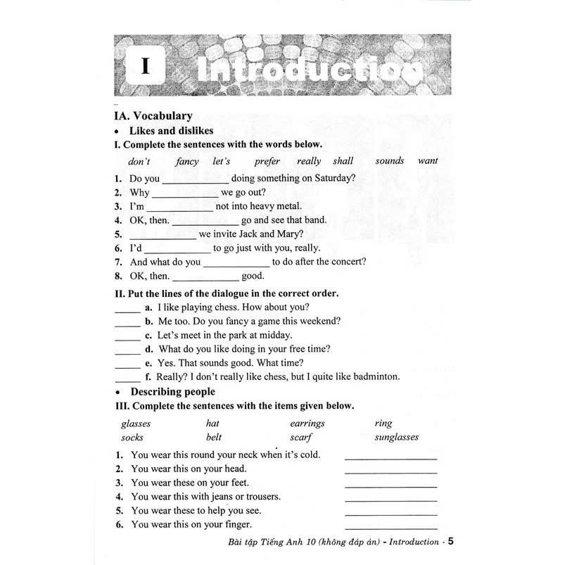 Các bài tập trong Bài Tập Tiếng Anh Lớp 10 - Không Đáp Án (Theo Chương Trình GDPT Mới) đa dạng, phong phú, bám sát từ vựng, ngữ pháp và chủ đề trong Sách giáo khoa Tiếng Anh - chương trình mới.