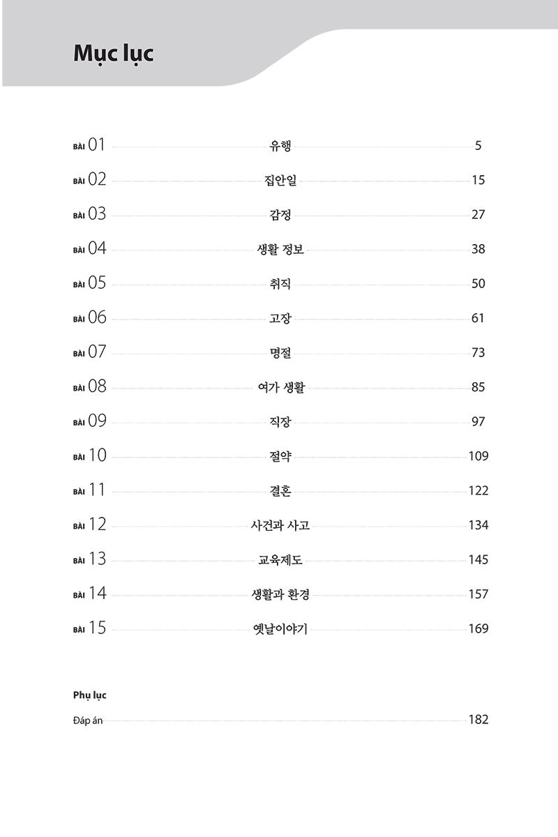 III. Nội dung sách bài tập Tiếng Hàn tổng hợp dành cho người Việt Nam trung cấp 4 phiên bản mới gồm: